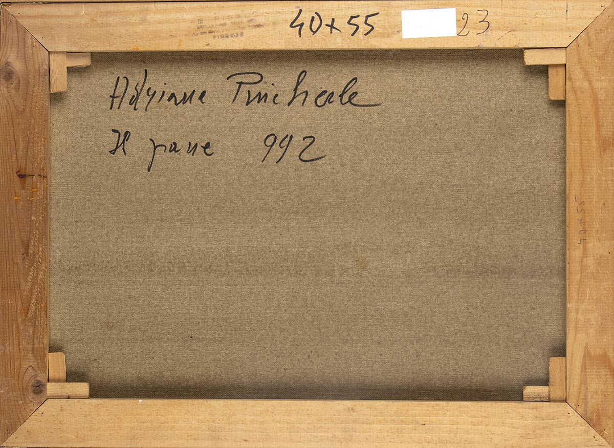 Firmato in basso a destra: Adriana Pincherle; al retro firmato, titolato e datato: Adriana Pincherle, Il pane, 1992