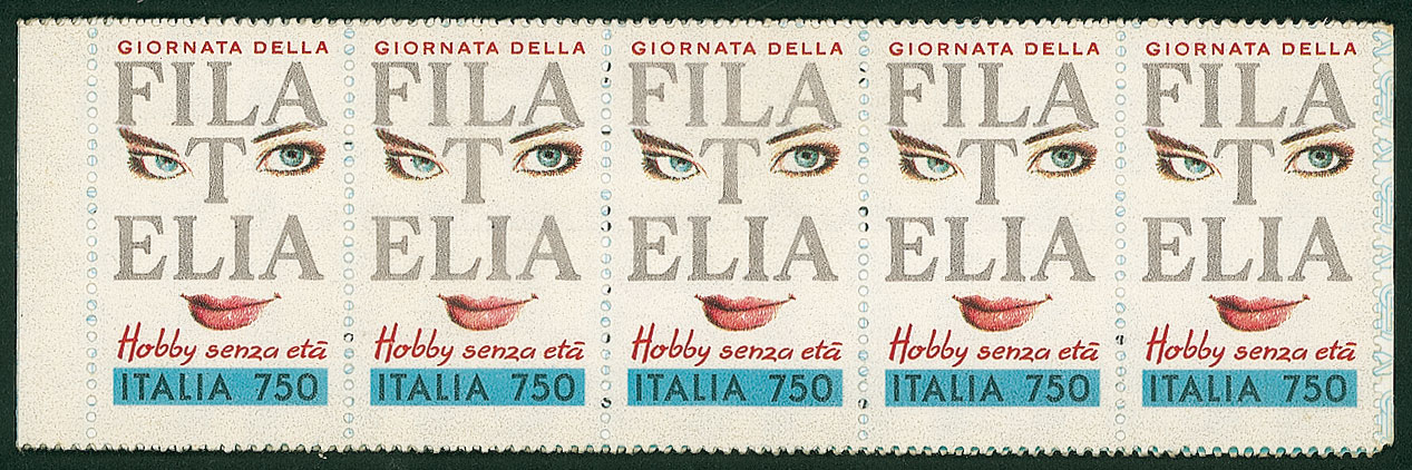 REPUBBLICA - 1972 - Libretto Filatelia - strisca di cinque senza I.P.Z.S. (15 - varietà)