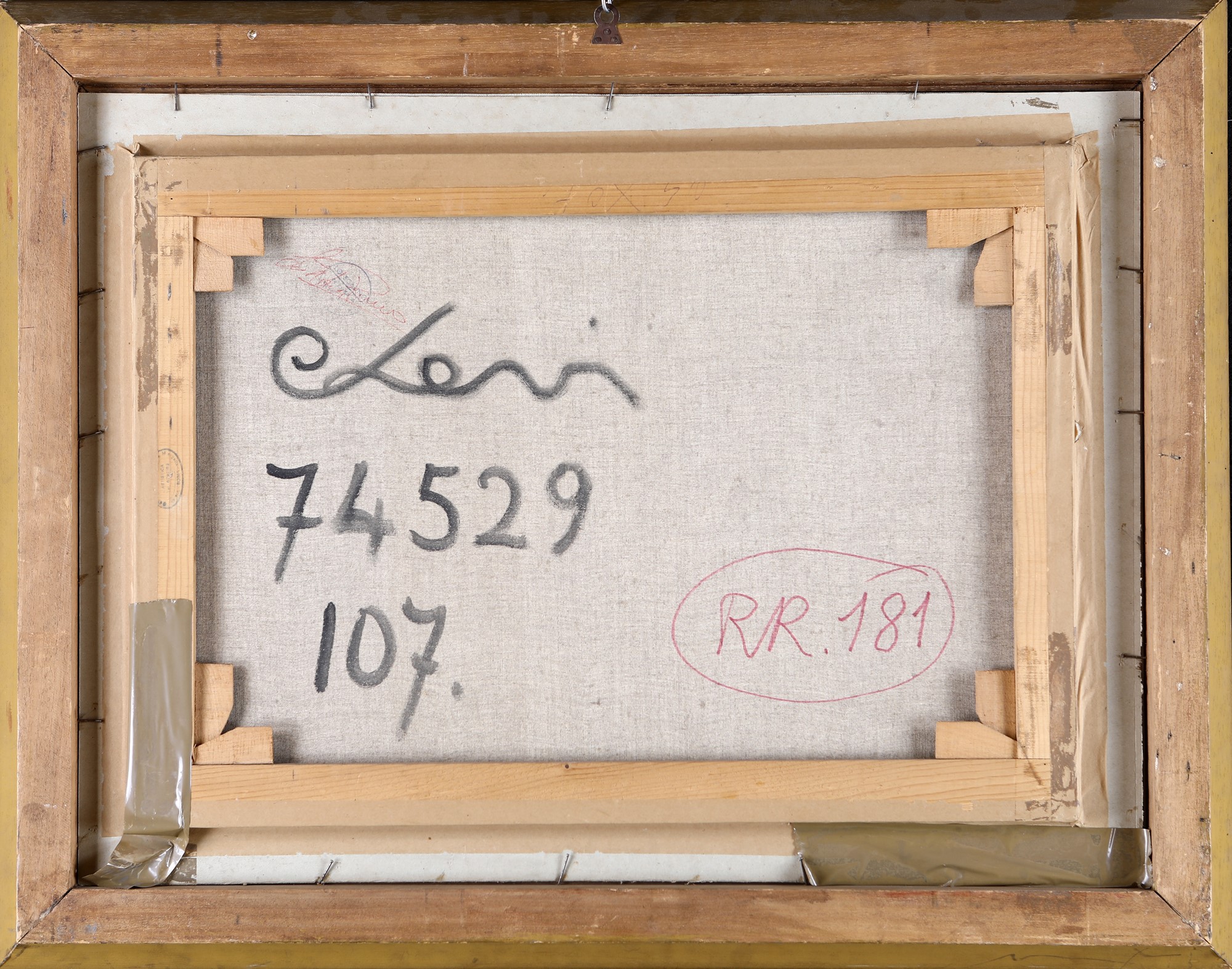 Firma sul fronte in basso al centro "C.Levi". Al verso reca timbro della Galleria Lo Scalino (Roma). Al verso firma e numero di archivio