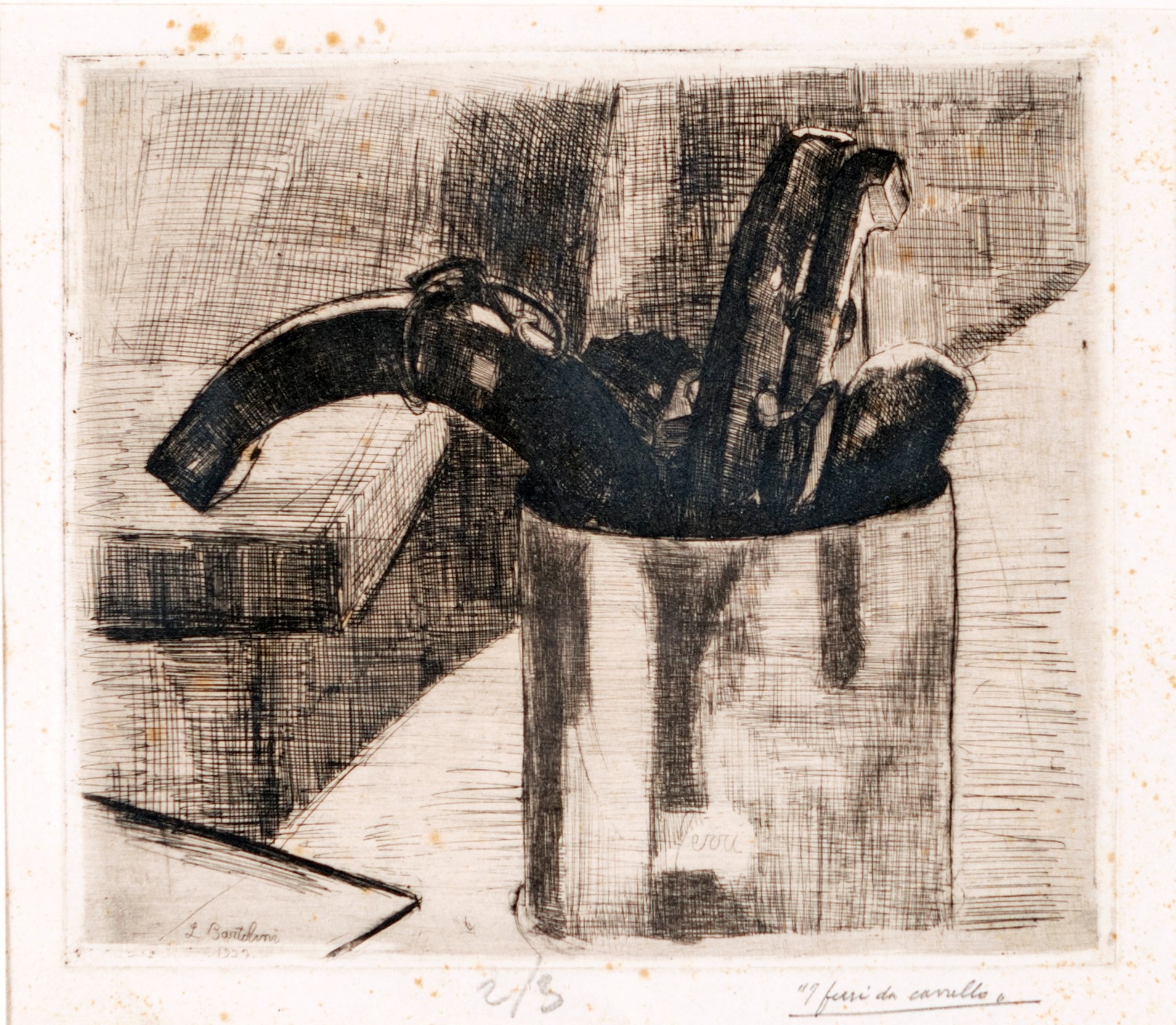 Firma e data incise su lastra "L.Bartolini 1927". Titolo e numerazione a matita "I ferri da cavallo 2/3".