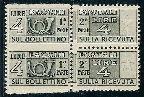 Lotto 556 | REPUBBLICA - 1947 - 4 lire - coppia con sezioni di sinistra non dentellate in...
