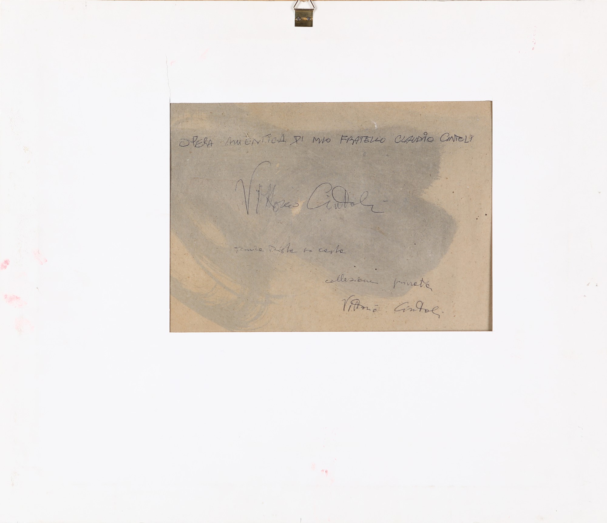 Firma e data in basso a destra "Cintoli '74". Al verso reca dichiarazione di autenticità e provenienza del fratello Vittorio Cintoli