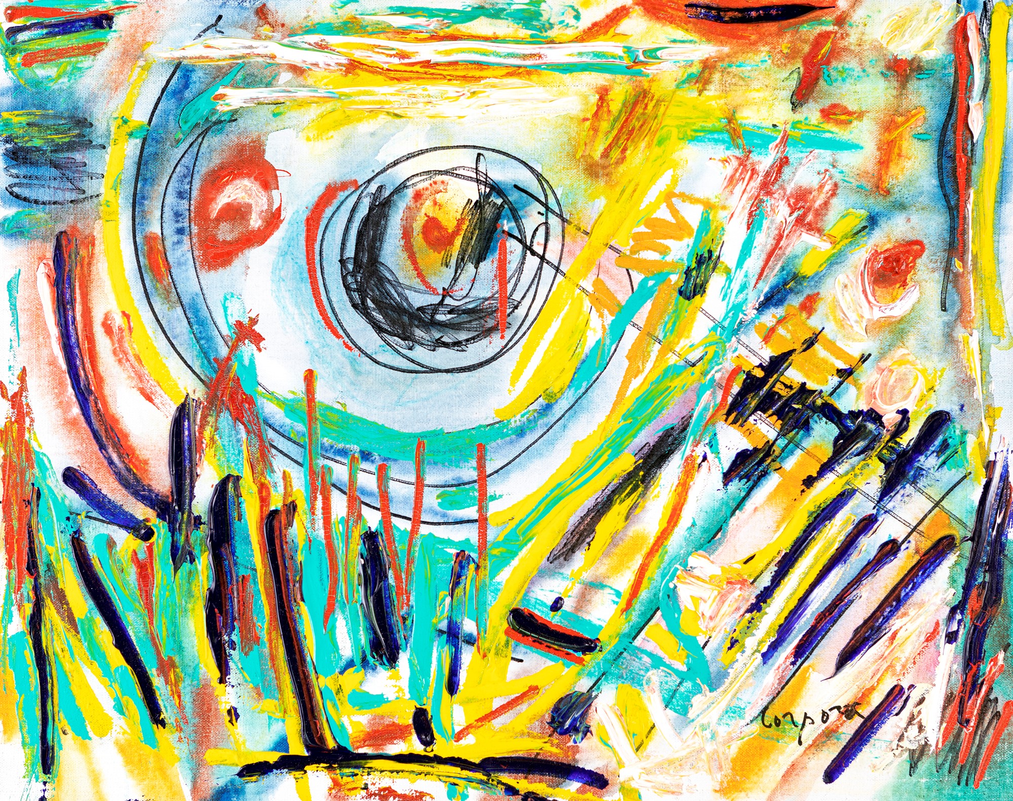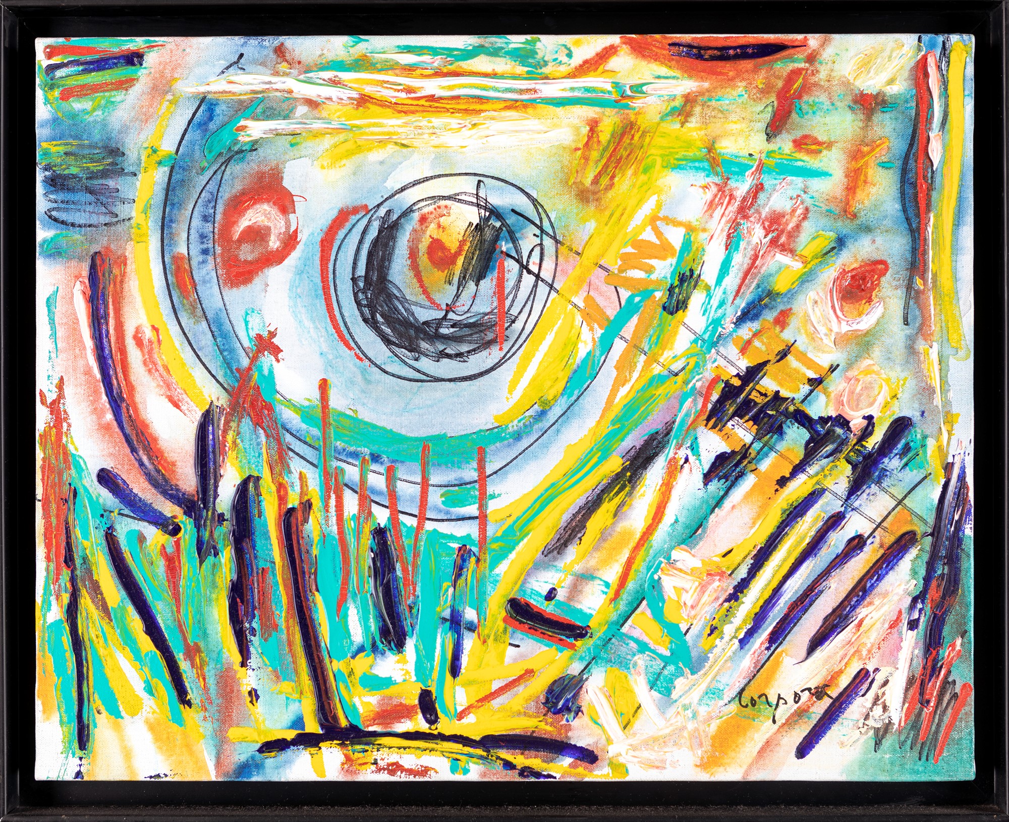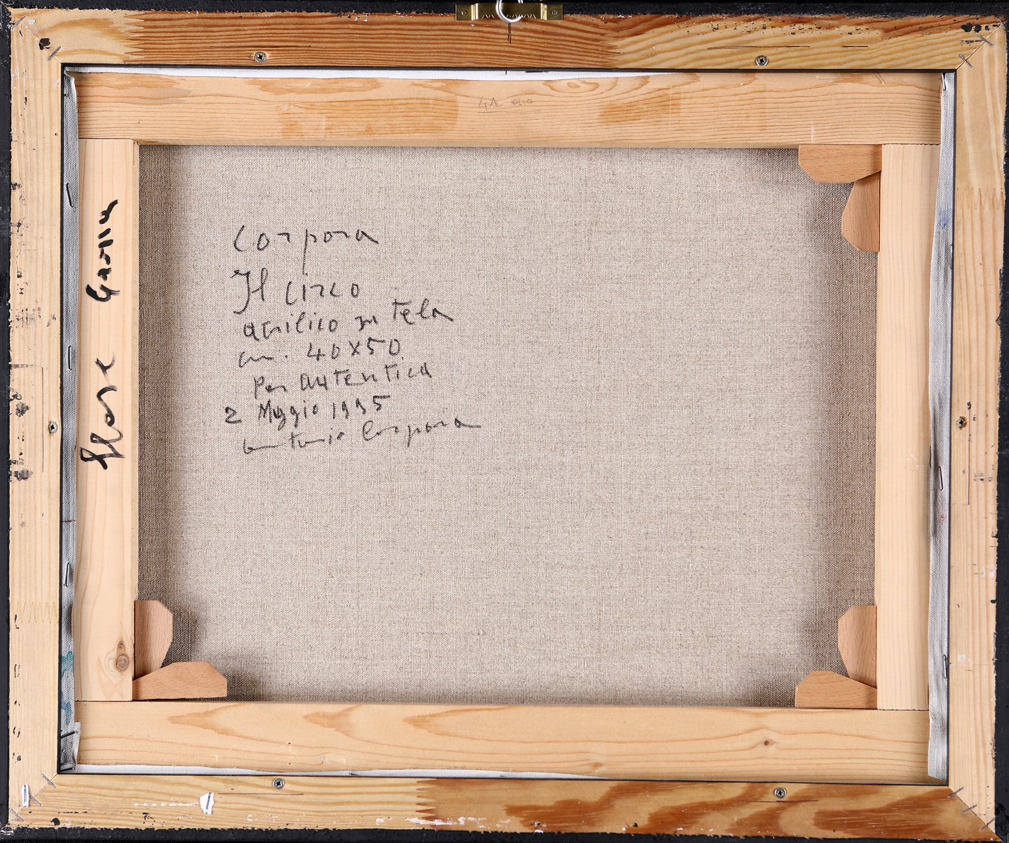 Firmato in basso a destra "Corpora". Al verso reca titolo, dimensioni, tecnica e firma per autentica di pugno dell'artista.