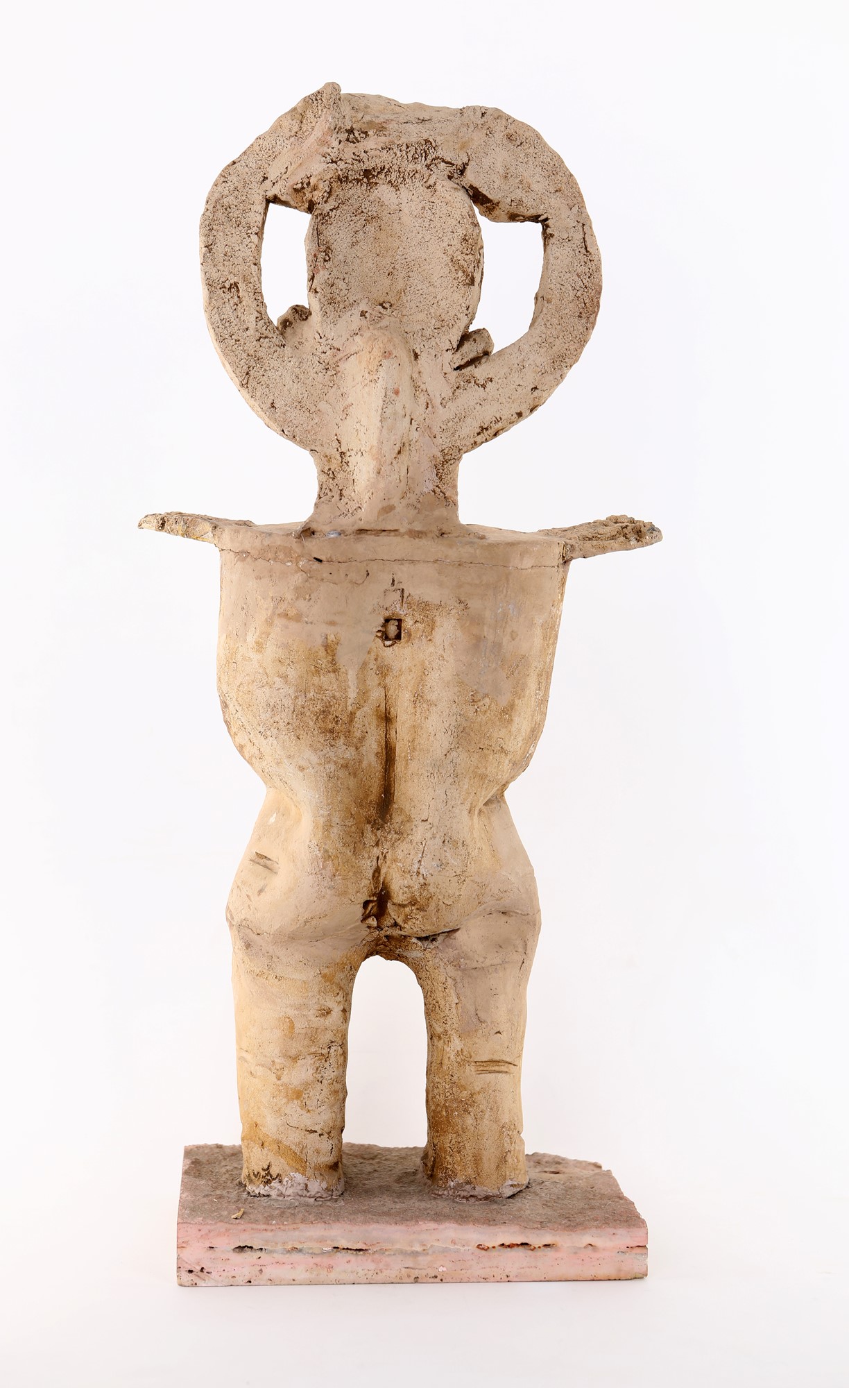 Scultura in ceramica cm 62x31x11 (base in travertino cm 3,5x18,26 ca)