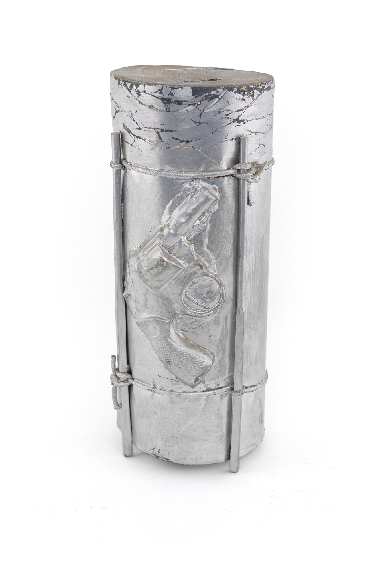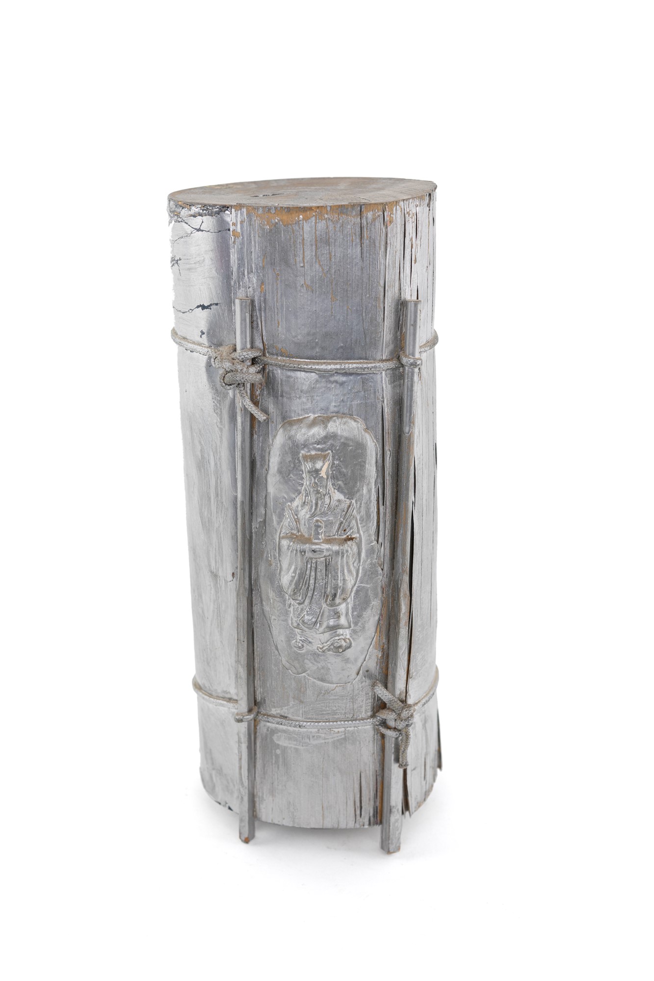 Scultura (Libro, legno, spago e alluminio) cm 29 (h) x 13 Ø