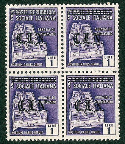 EMISSIONI LOCALI - CLN TORINO - 1945 - 1 lira - quartina con soprastampe in...
