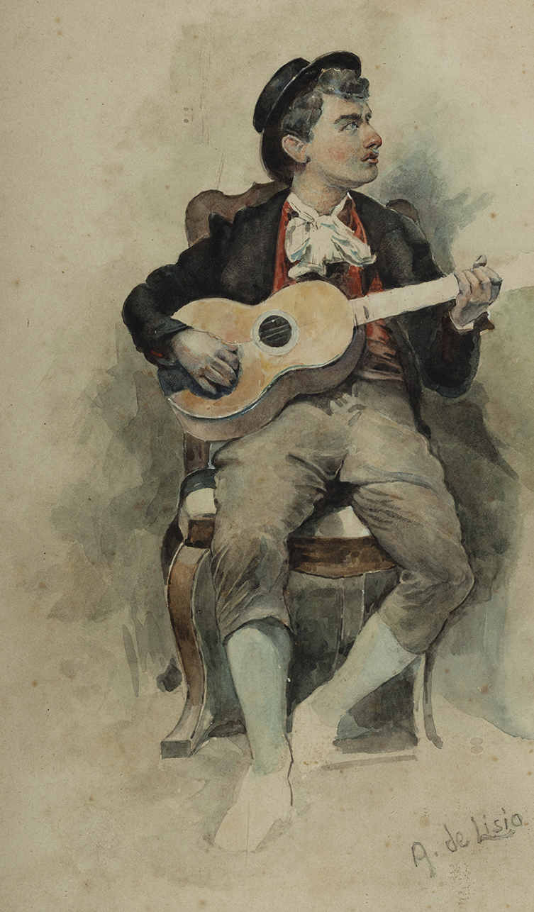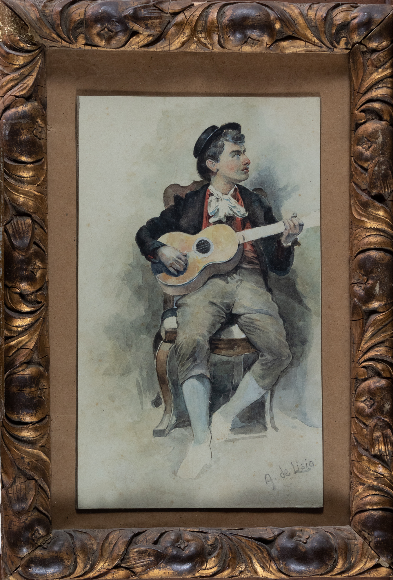 Arnaldo de Lisio (Castelbottaccio, CB 1869 - Napoli 1949), Suonatore di chitarra, acquerello su carta, 30x18 cm