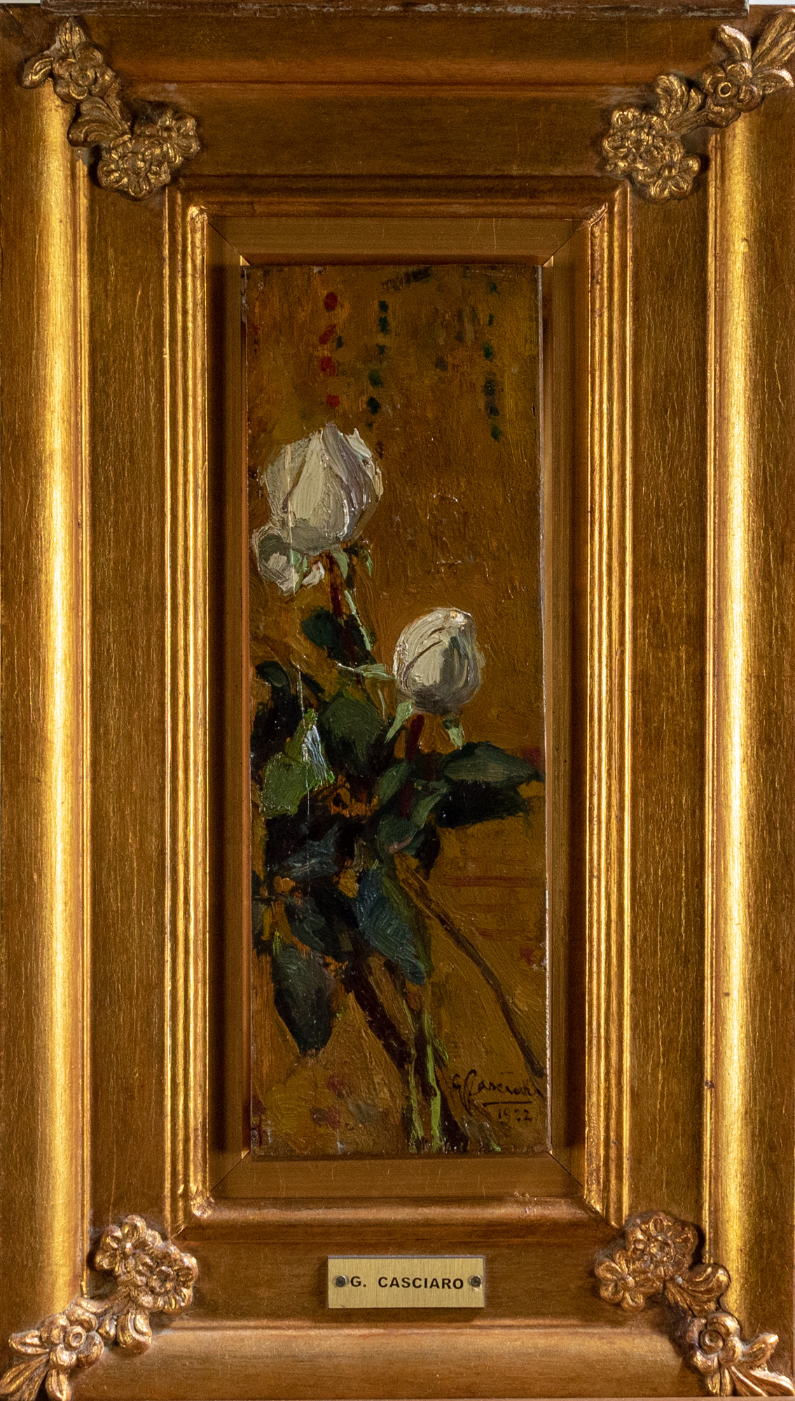 Giuseppe Casciaro (Ortelle, LE 1863 - Napoli 1941), Boccioli, olio su tavola, 25x8 cm