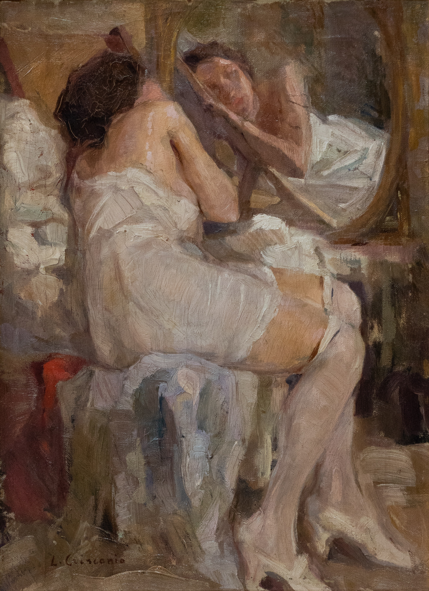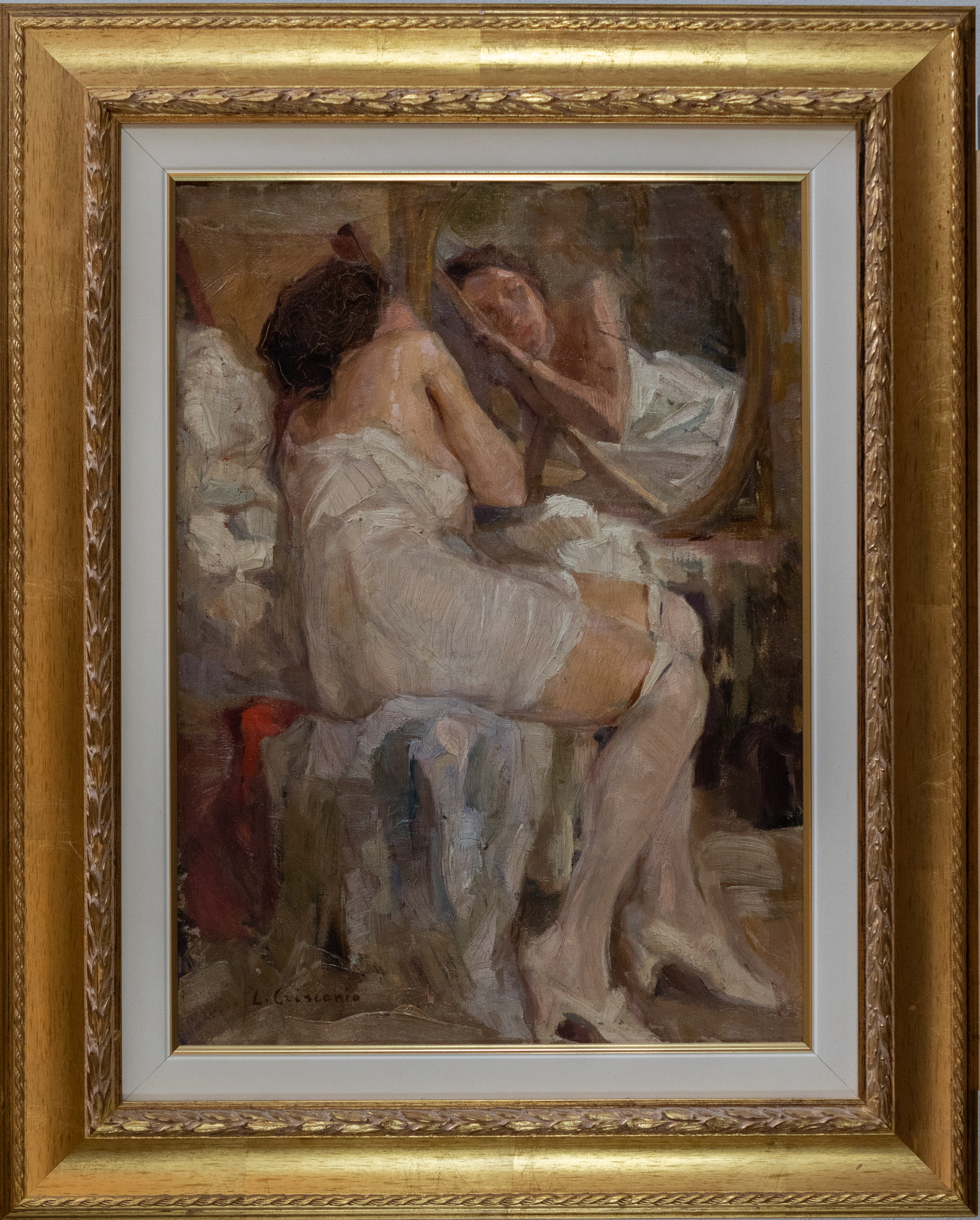 Luigi Crisconio (Napoli 1893 - Portici,NA 1946), Specchio, olio su tela, 48x35 cm