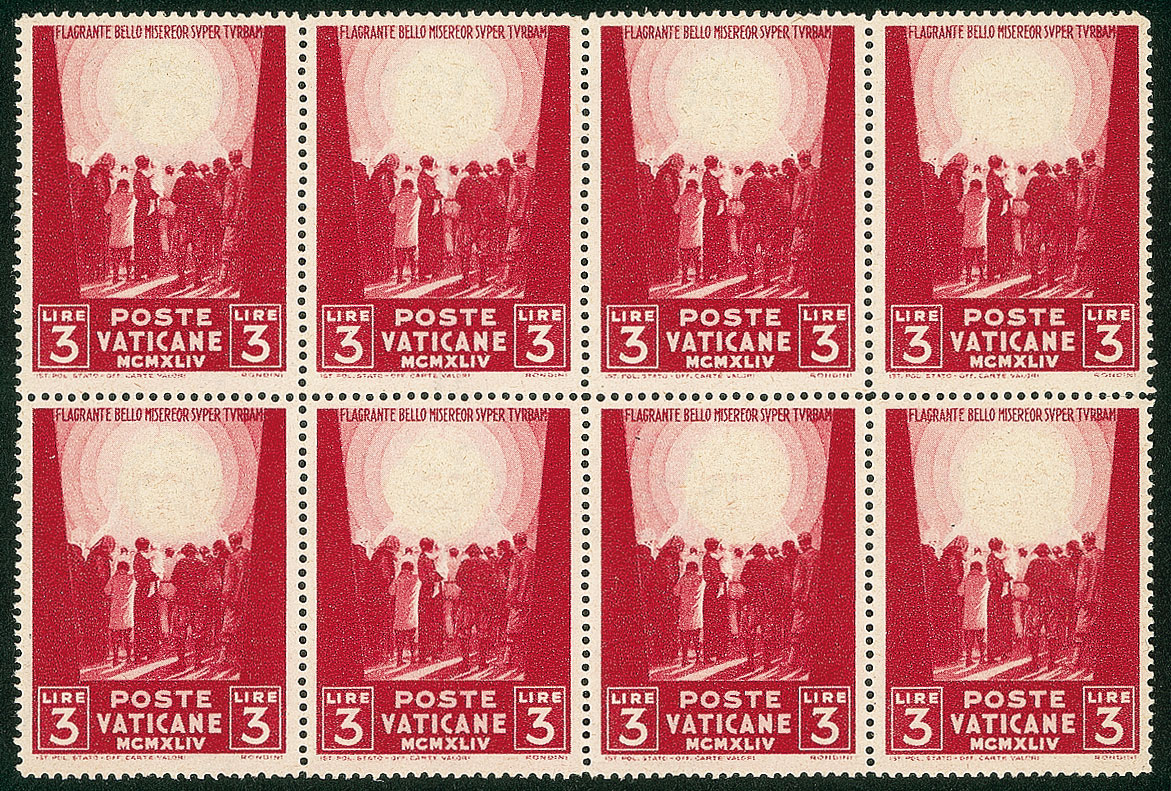 Lotto 603 | VATICANO - 1945 - 3 lire - blocco di otto - effigie del Cristo da evanescente...