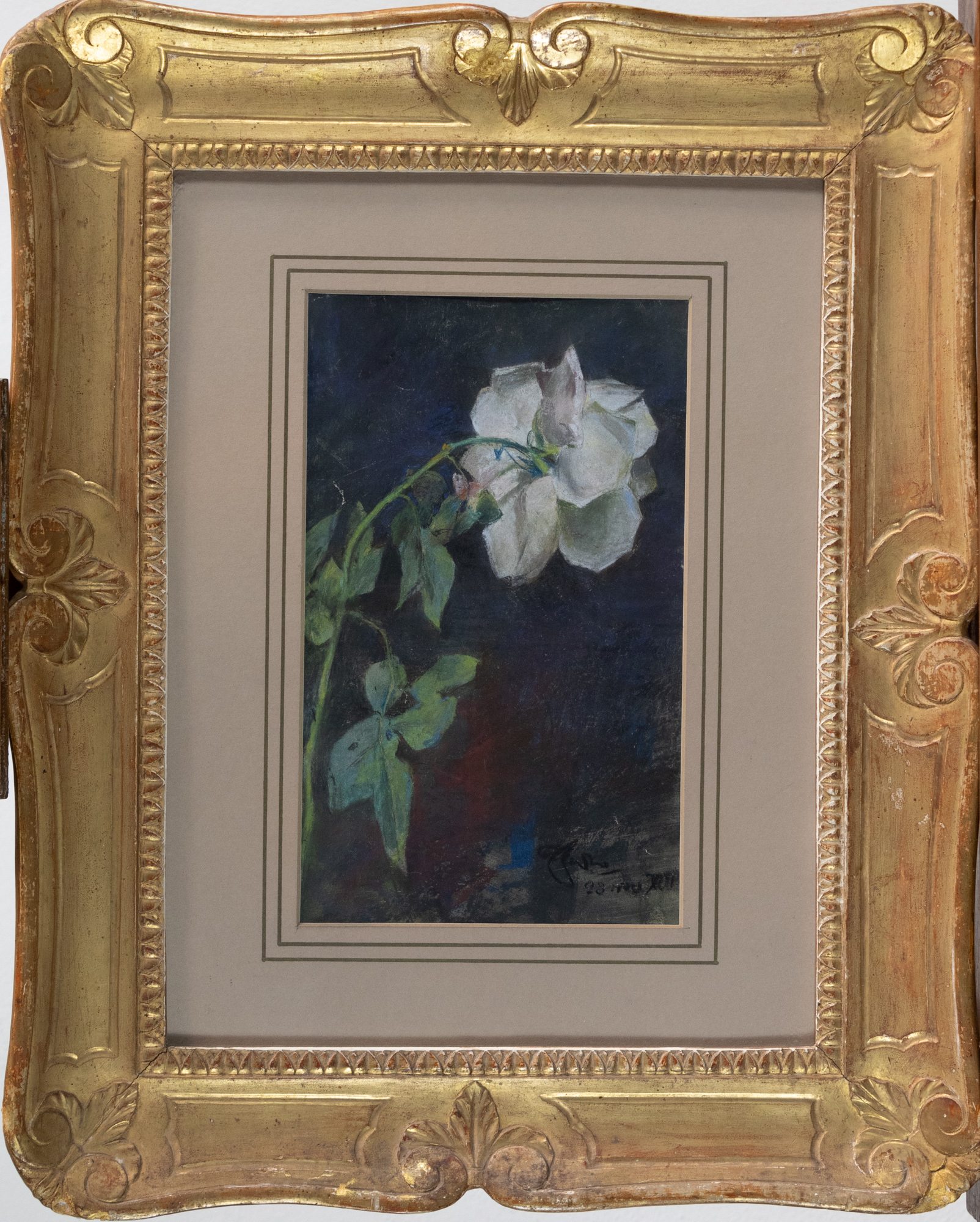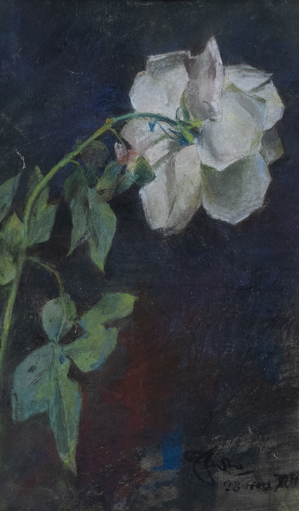 Giuseppe Casciaro (Ortelle, LE 1863 - Napoli 1941), Rosa bianca, pastello su carta, 30x18 cm