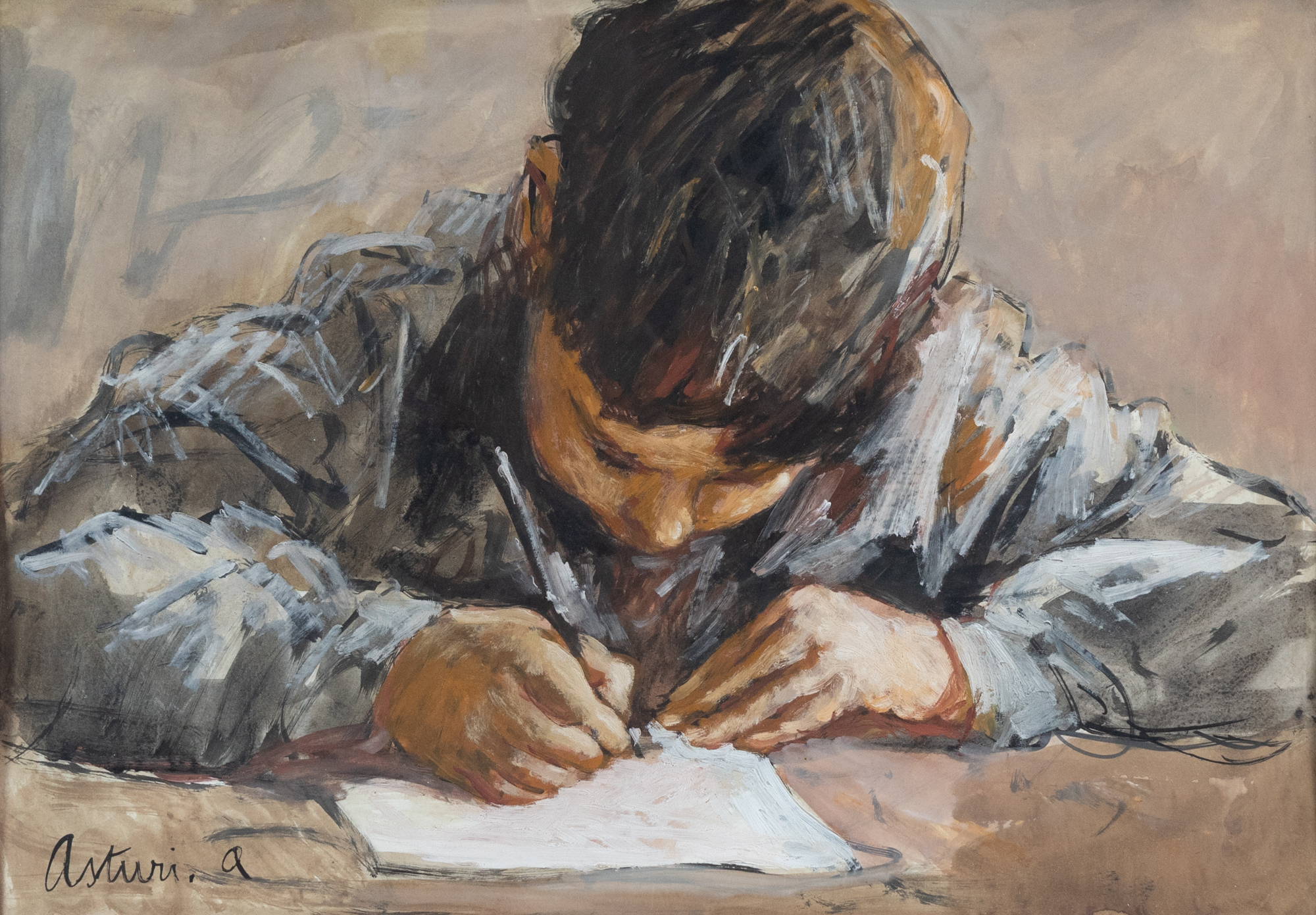 Antonio Asturi (Vico Equense, NA 1904 - 1986), Studente, tempera su carta, 35x50 cm