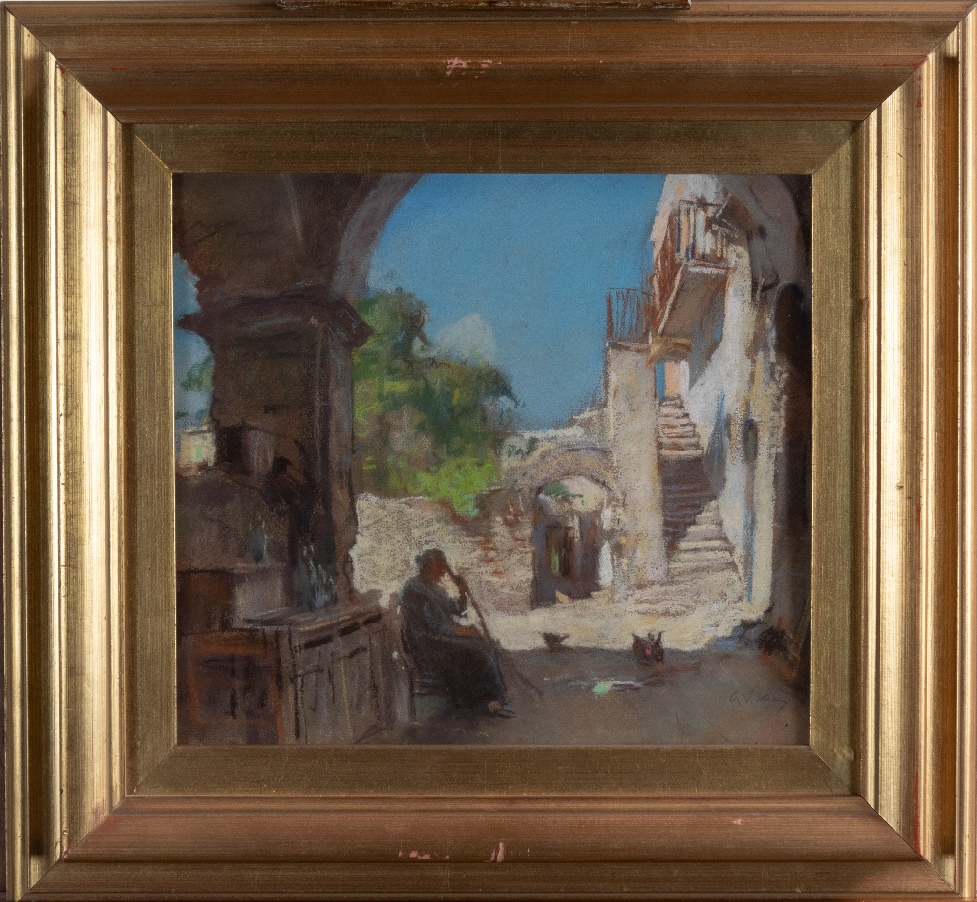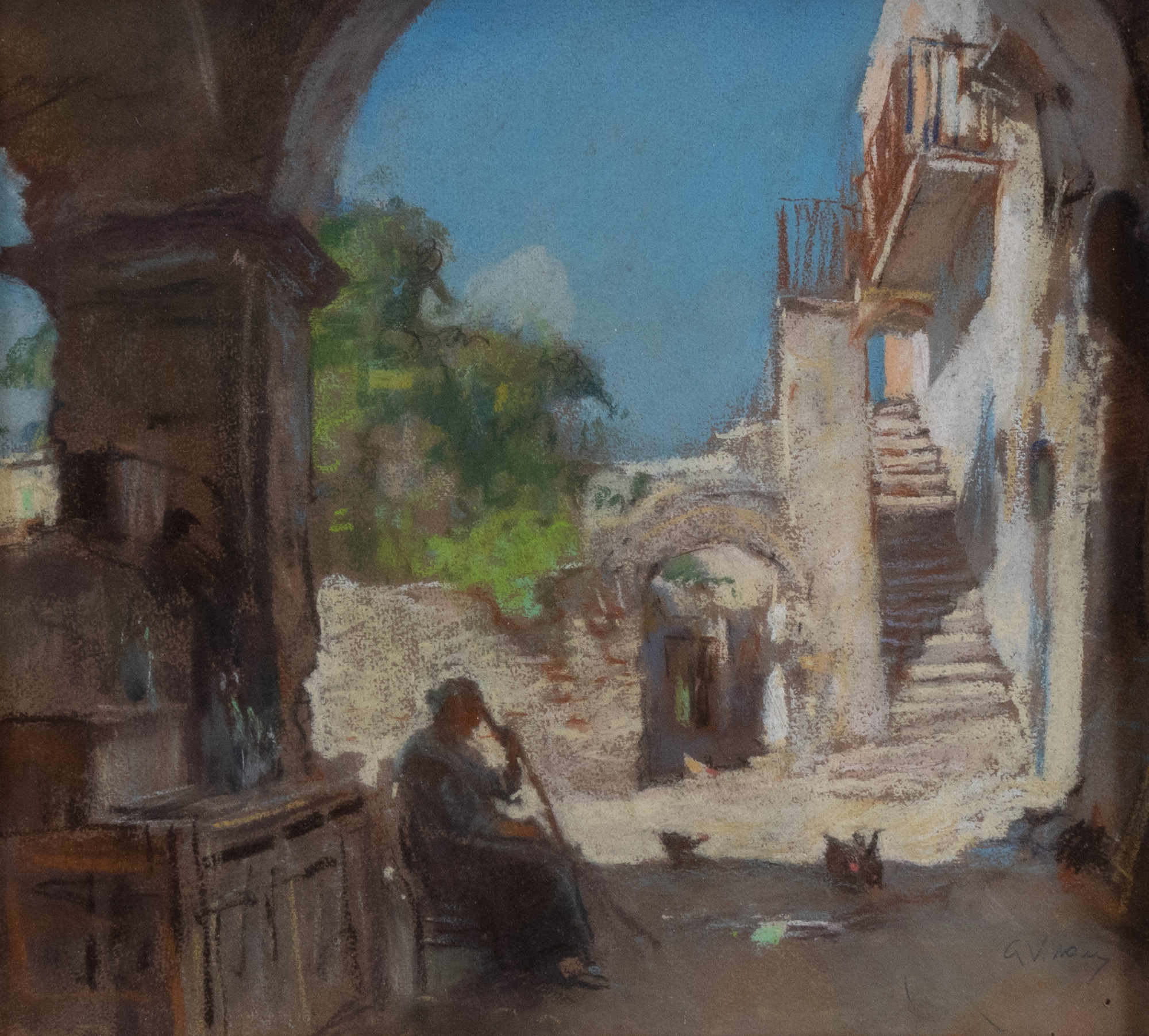 Gennaro Villani (Napoli 1885 - 1948), Cortile, pastello su cartoncino, 27x30 cm