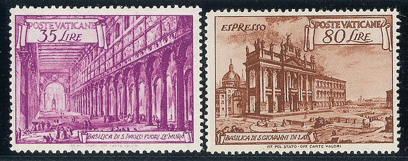 Lotto 604 | VATICANO - 1949- Basiliche - serie completa con Espressi - 12 valori - gomma...