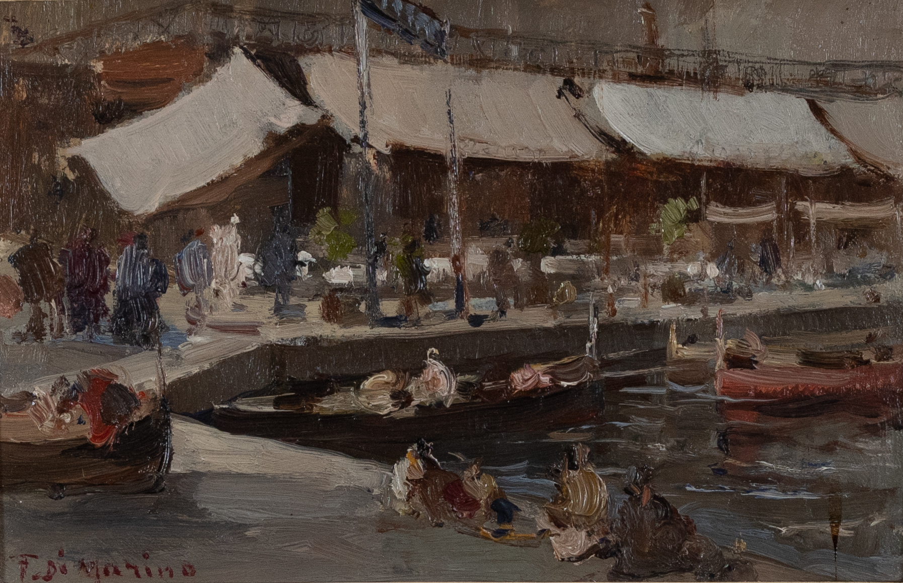 Francesco Di Marino (Napoli 1892 - 1954), Borgo Marinaro, olio su tavola, 20x30 cm