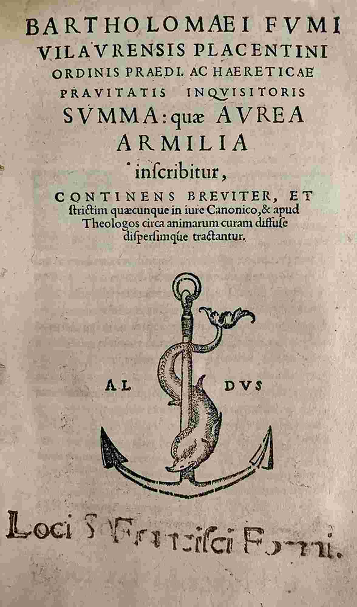 BARTOLOMEO FUMO: Summa Armilla, Venezia, Aldus , 1555