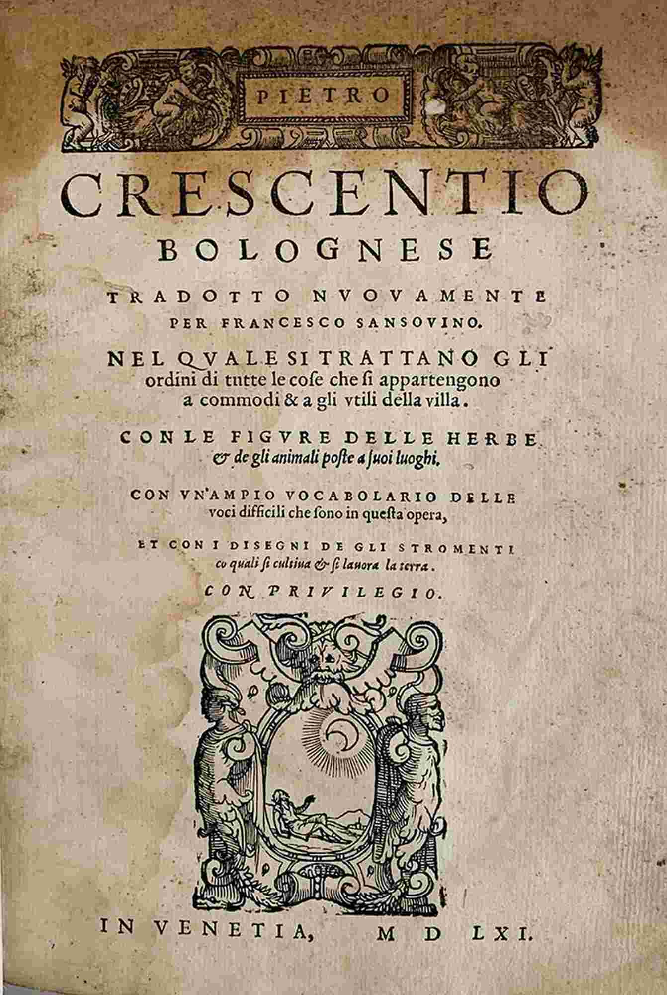 Pietro Crescentio Bolognese Tradotto Nuovamente, Venezia, Per Francesco Sansovino, 1561