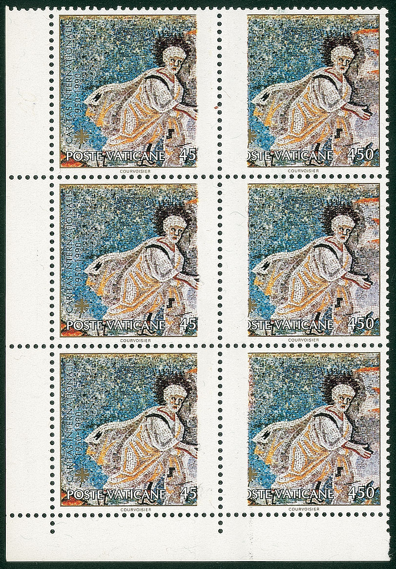 Lotto 609 | VATICANO - 1990 - 450 lire Caritas - blocco di sei con grande falla di stampa...