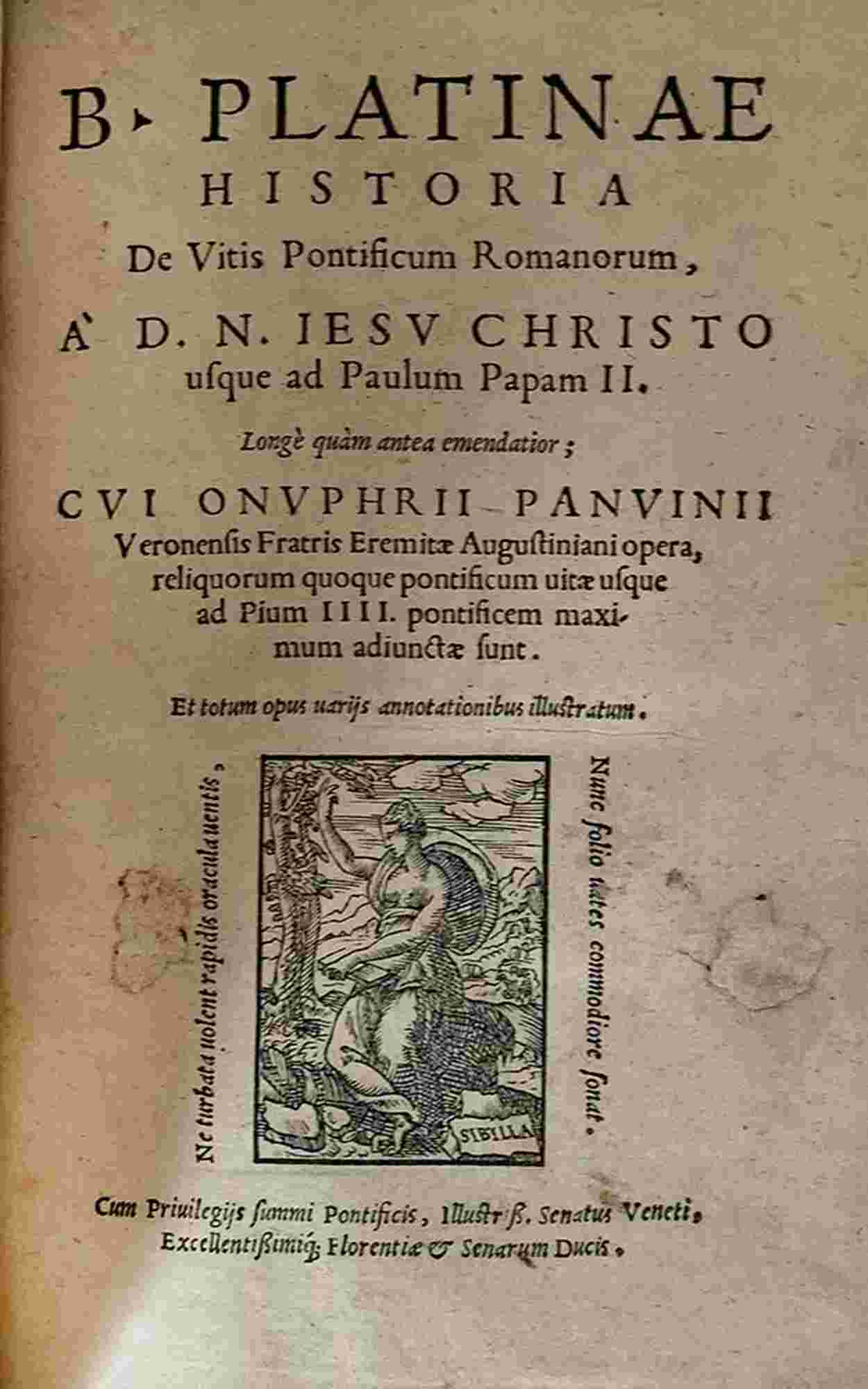 PLATINA GIOVANNI BATTISTA: Historiae De Vitis Pontificum, Venezia, Michele Tramezzinio, 1562