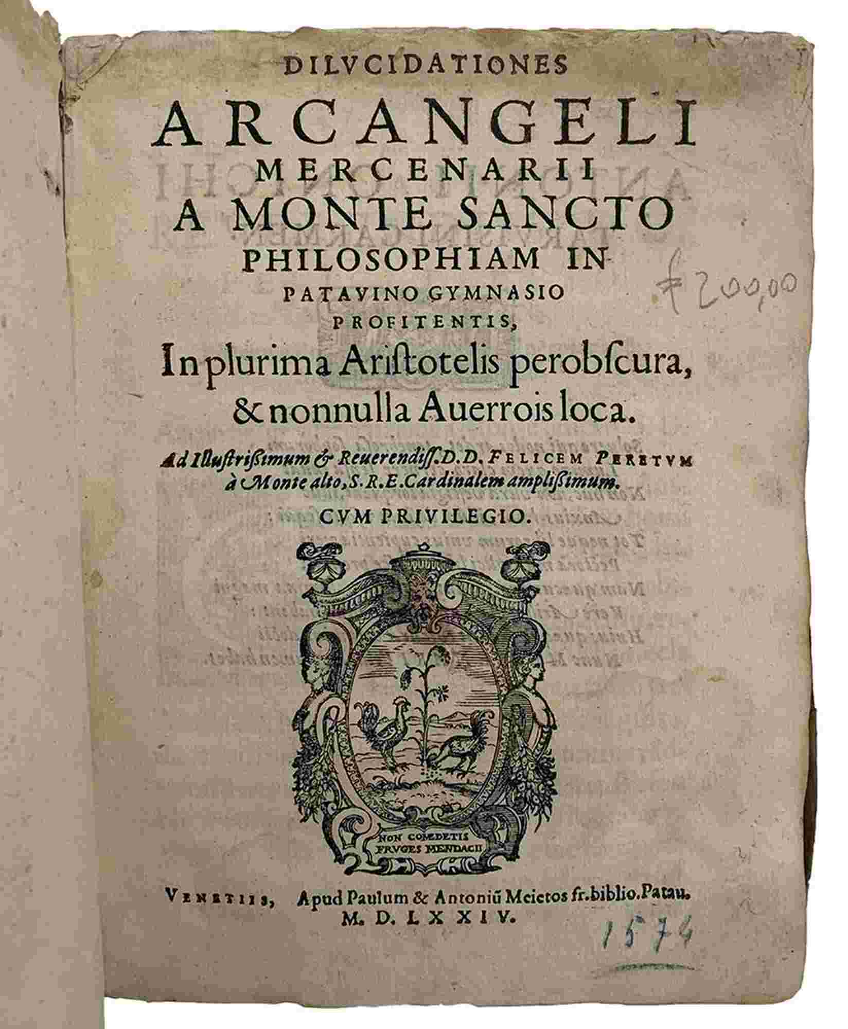 ARCHANGELUS MERCENARIUS: Dilucidationes In Plurima Aristotelis Et Averrois Loca, Venezia, Apud Paulum Et Aantonium Meietti, 1574