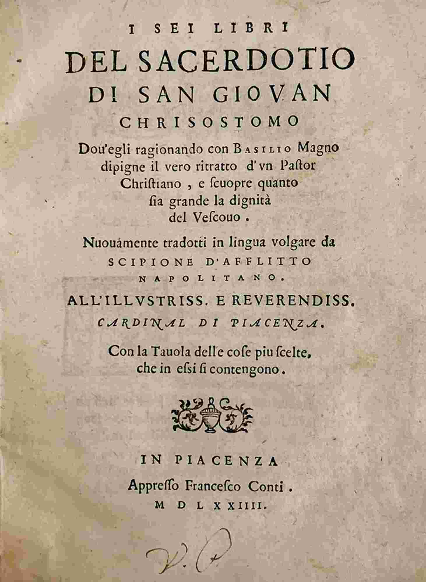 I Tre Libri Del Sacerdotio, Piacenza, Francesco Conti, 1574