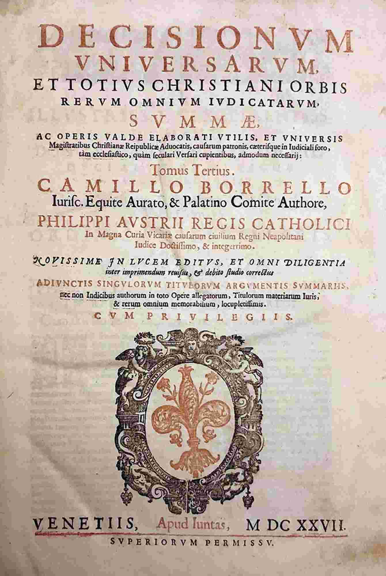 CAMILLUS BORRELLI: Decisionum Universarum Totius Christiani Orbi, Venezia, Apud Iuntas, 1627