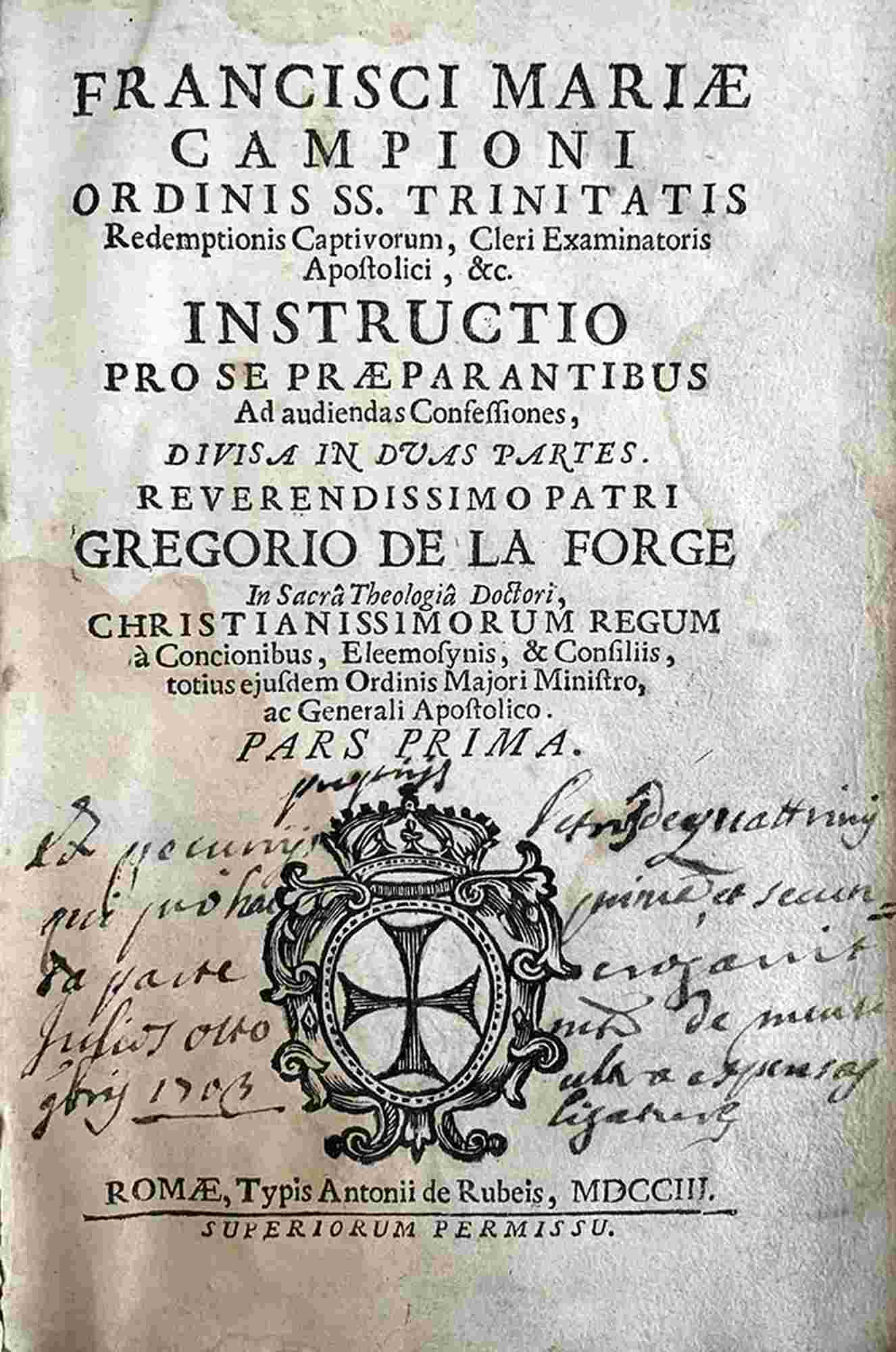 Lotto 177 | FRANCISCUS MARIA CAMPIONI: Instructio Pro Se Praeparantibus, Roma, Antoniius De Rubeis, 1703