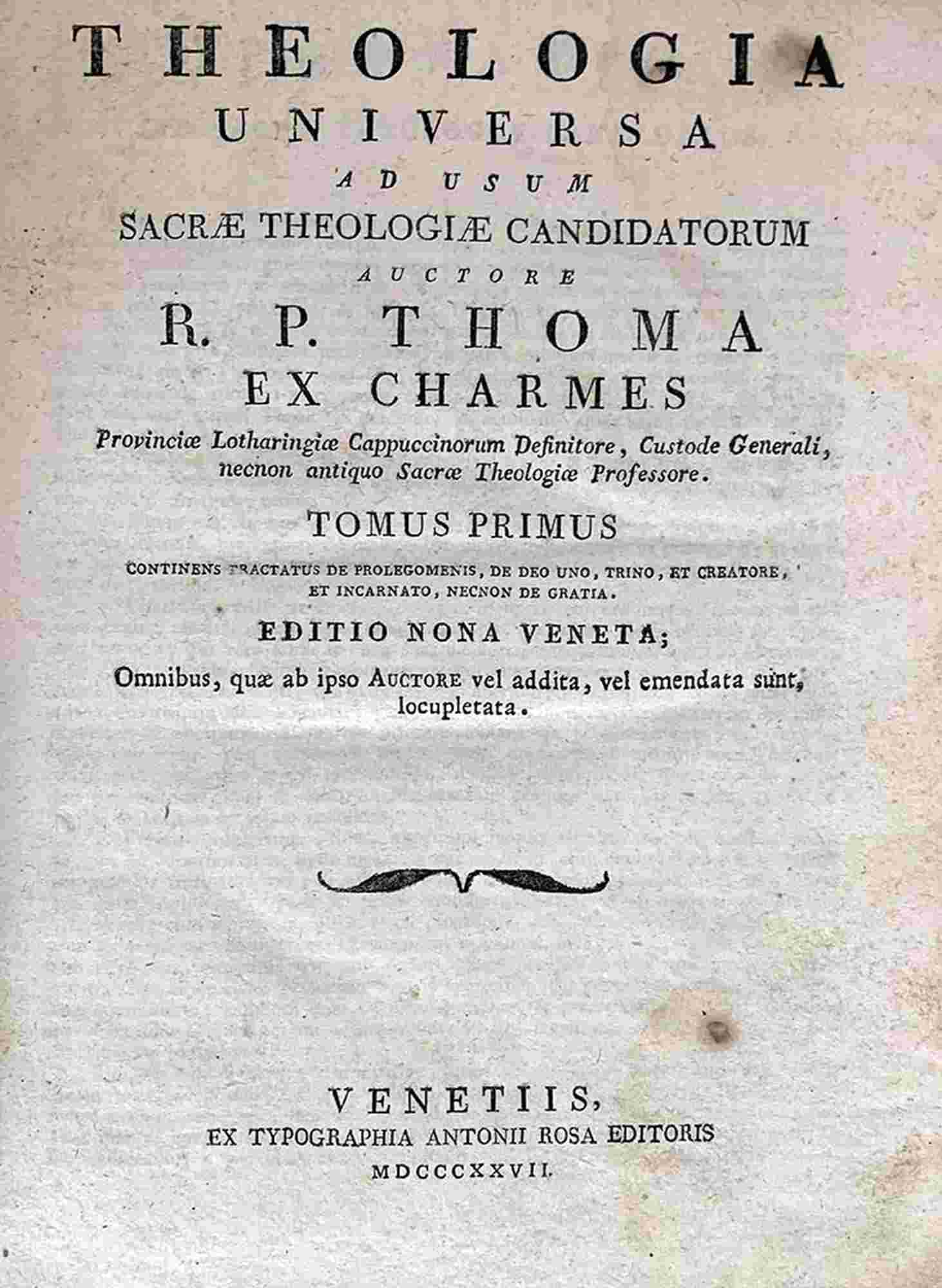 THOMAS EX CJHARMES: Theologia Universa, Venezia, Antonio Rosa, 1727