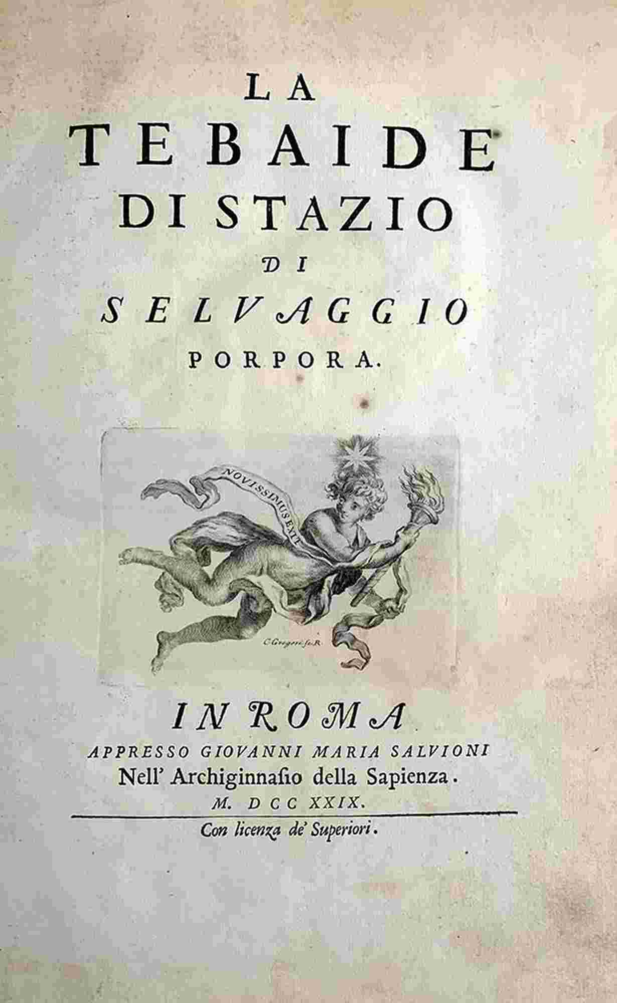 Lotto 188 | PUBLIO PAPINIO STAZIO: La Tebaide, Roma , Giovanni Maria Salvioni, 1729