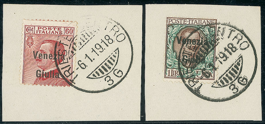 OCCUPAZIONI - 1918/1919 - Soprastampati - serie completa - 11 valori su altrettanti frammenti - cert. Cerruti (19/29 - 475+)