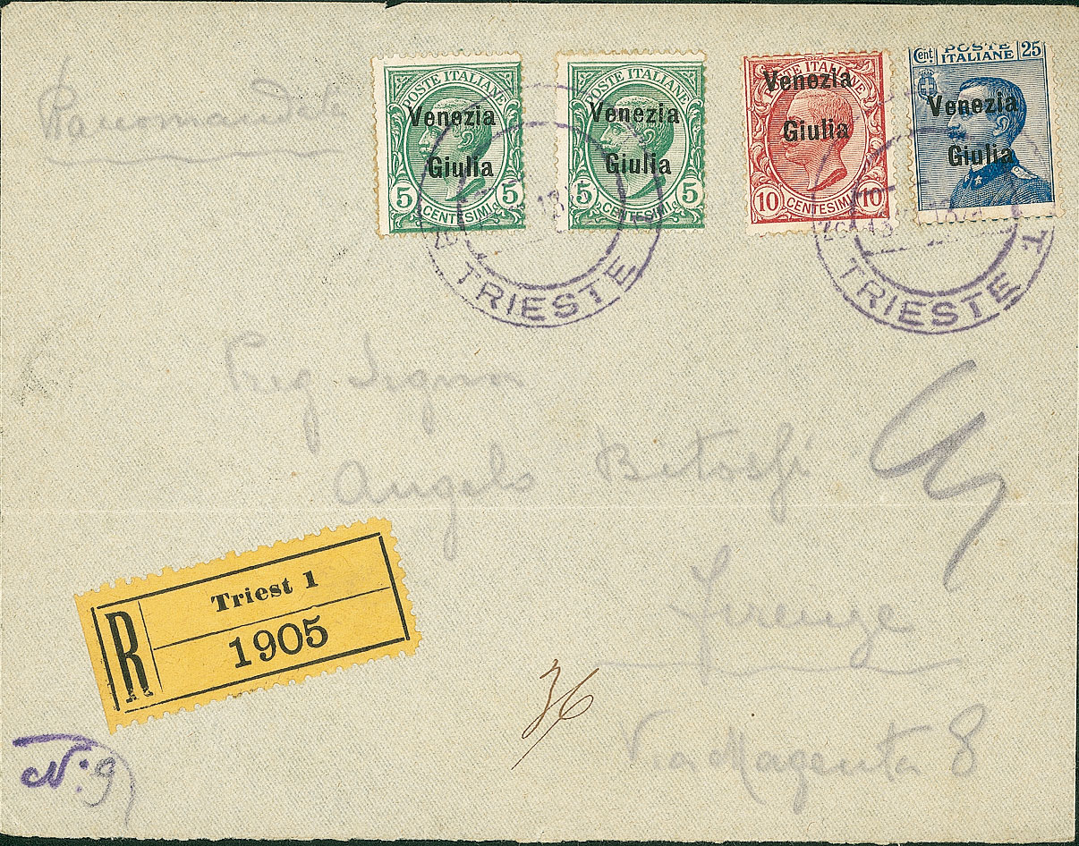 Lotto 628 | OCCUPAZIONI - Raccomandata da Trieste a Firenze del 13.11.18 (21+22+24)