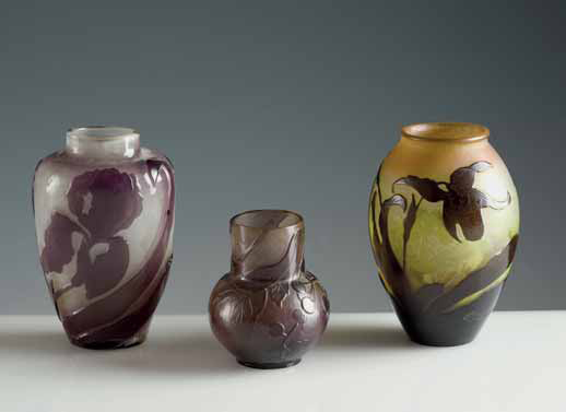 Lotto 102 | Gallé. Piccolo vaso in vetro a cammeo decorato a iris nei toni del viola,...