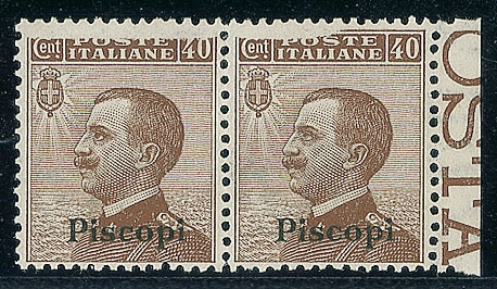 COLONIE E POSSEDIMENTI - Piscopi - 1912 - 40 cent - coppia con stampa mancante in alto - gomma integra (6a - 450)
