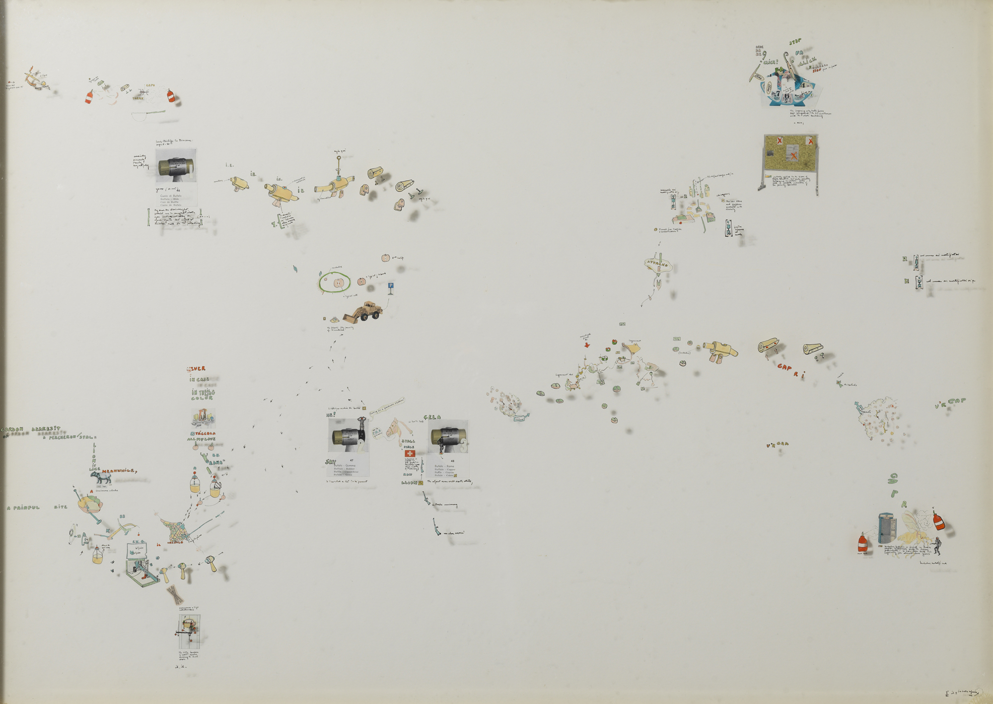 Smalti industriali, china su lastre di plexiglas, ritagli da riviste, china su cartone, cm. 74,5 x 103 x 6