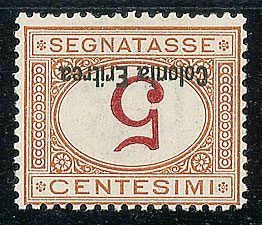 COLONIE E POSSEDIMENTI - 1920 - 5 cent - soprastampa capovolta - gomma integra (14a Segnatasse - 1.050)