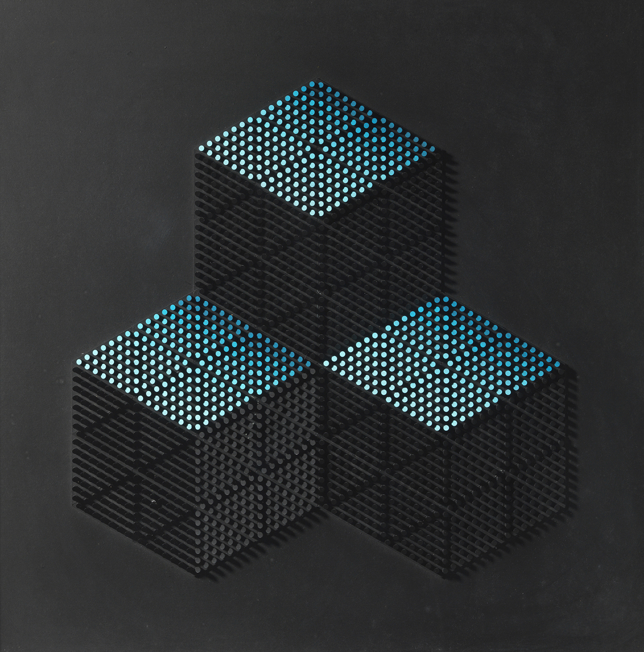 Cilindretti dipinti su tavola, cm. 60 x 60