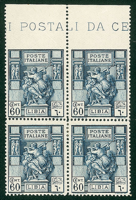 COLONIE E POSSEDIMENTI - 1924 - 60 cent Sibilla - quartina - coppia superiore non dentellata in alto (gomma integra) - linguella sulla coppia in basso (42a - 1.050)