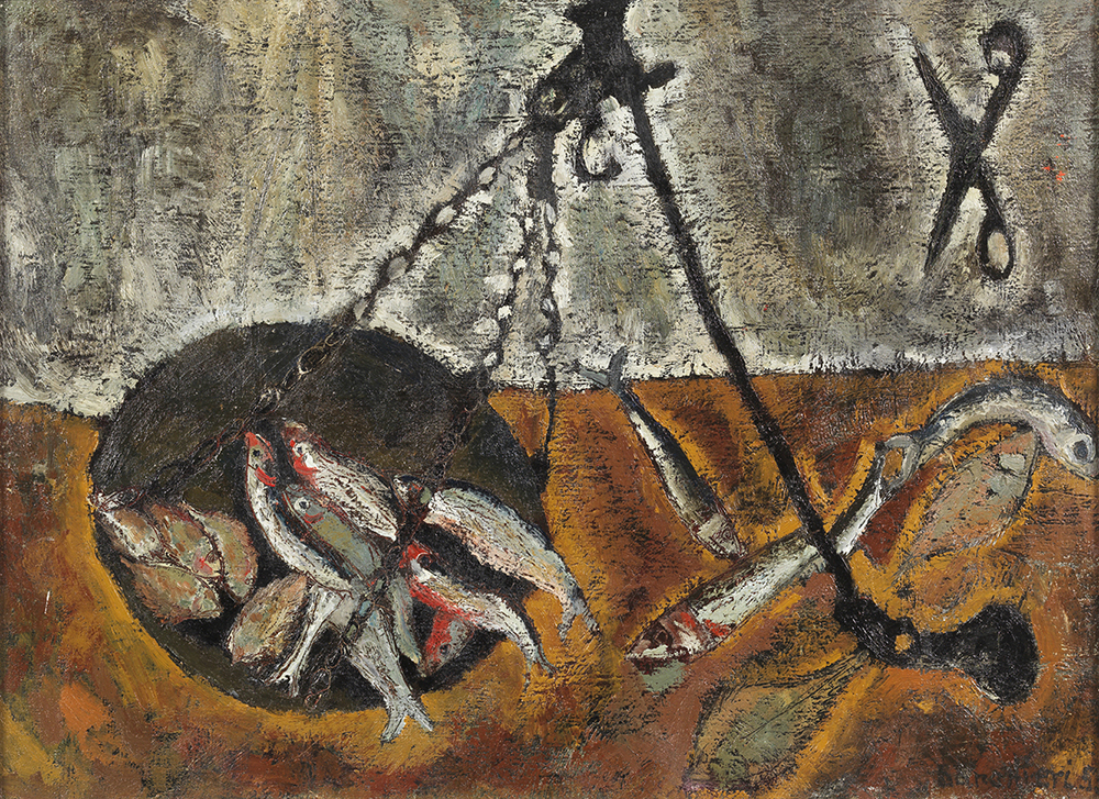 Natura morta con pesci, 1955