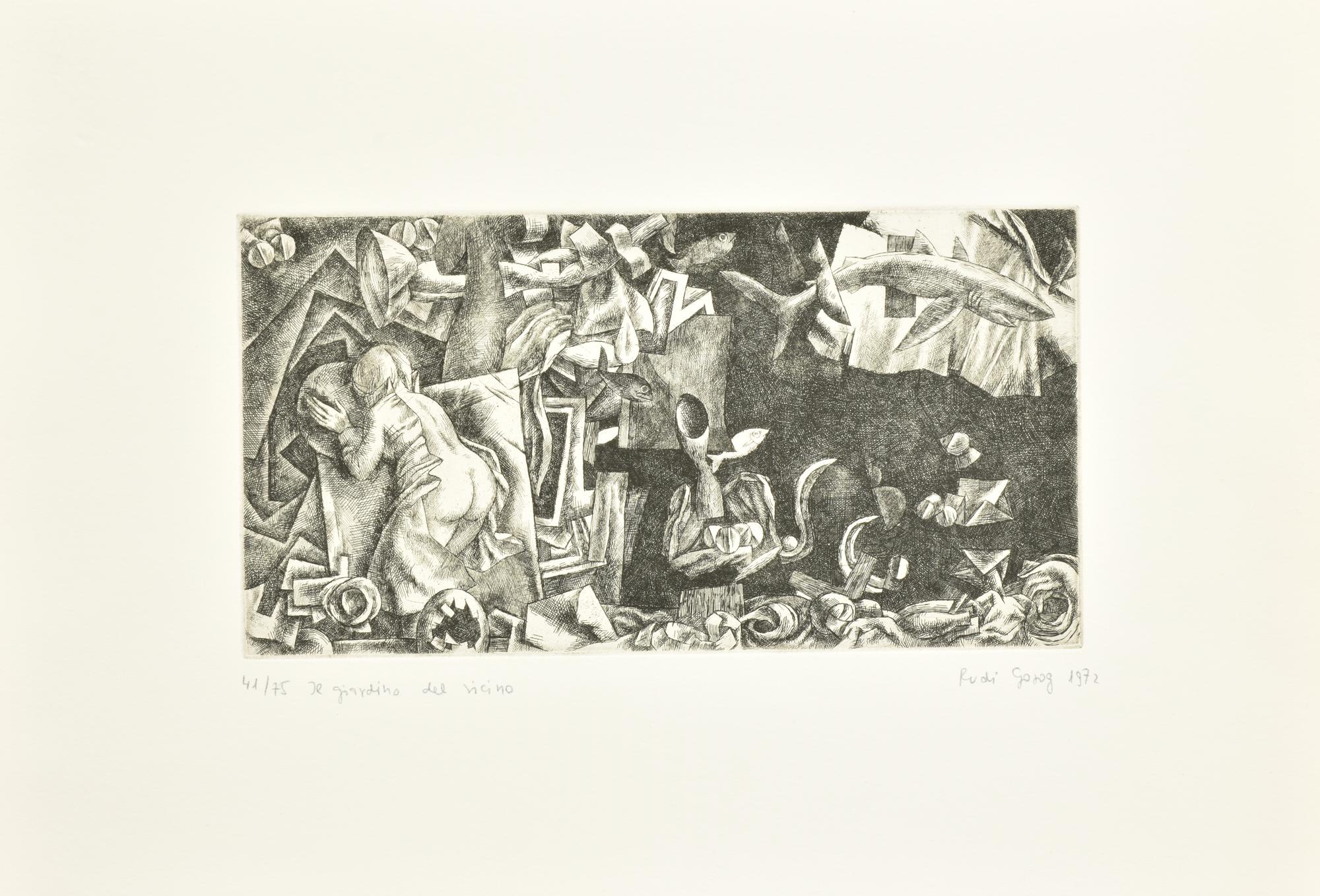 Rudi Gorog IL GIARDINO DEL VICINO incisione su carta Fabriano, battuta cm...
