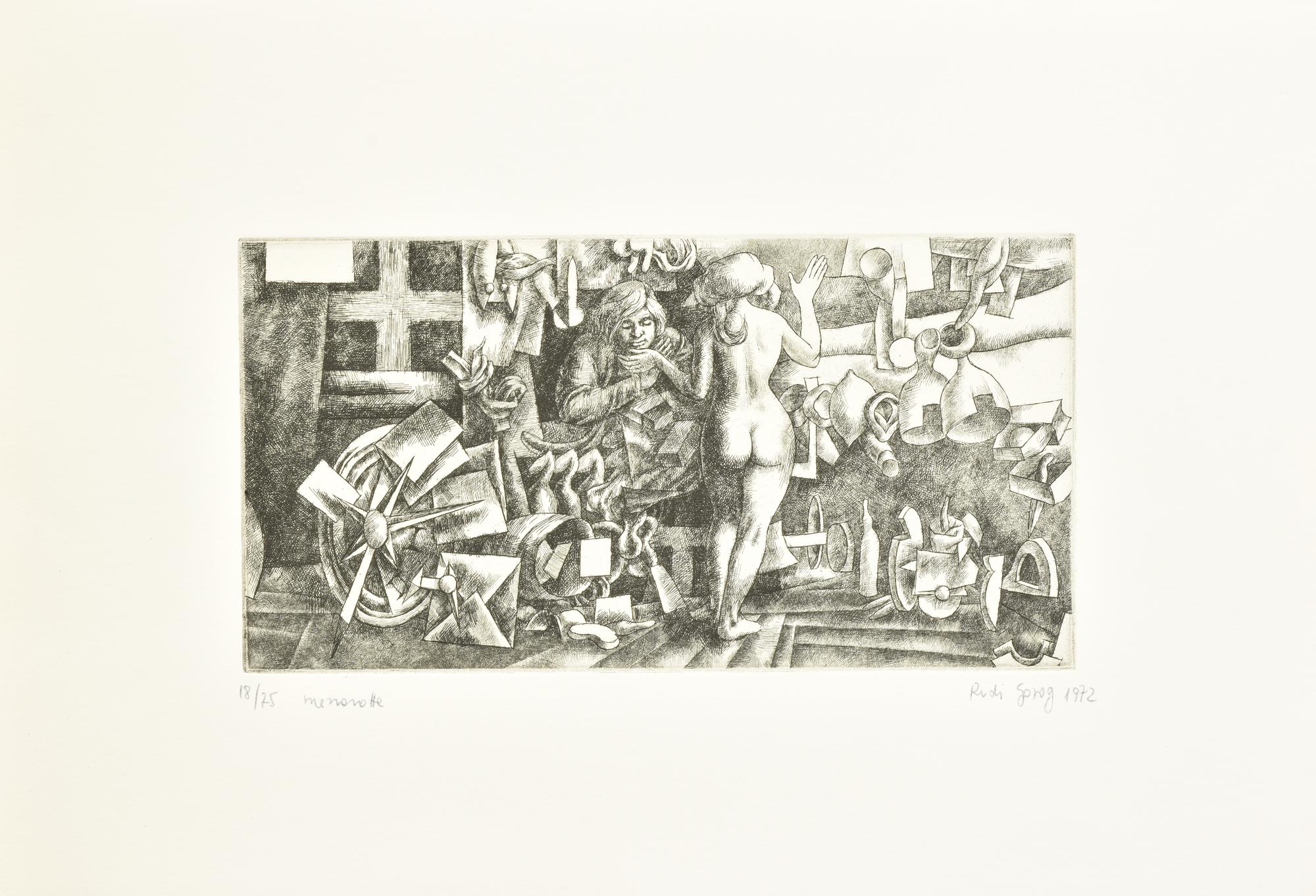 Rudi Gorog MEZZANOTTE incisione su carta Fabriano, battuta cm 15,5x30, su...