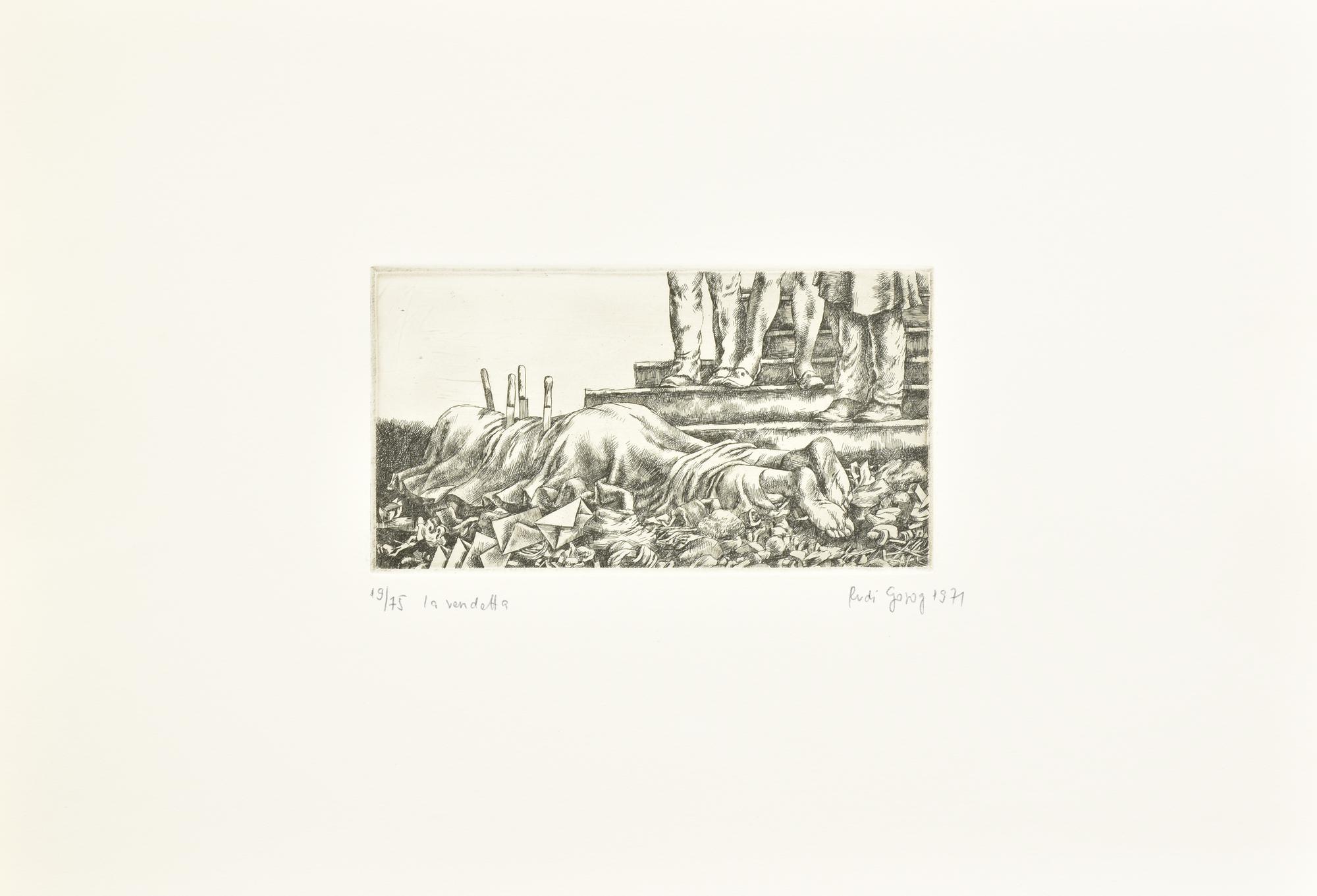 Lotto 60 | Rudi Gorog LA VENDETTA incisione su carta Fabriano, battuta cm 11x20, su...
