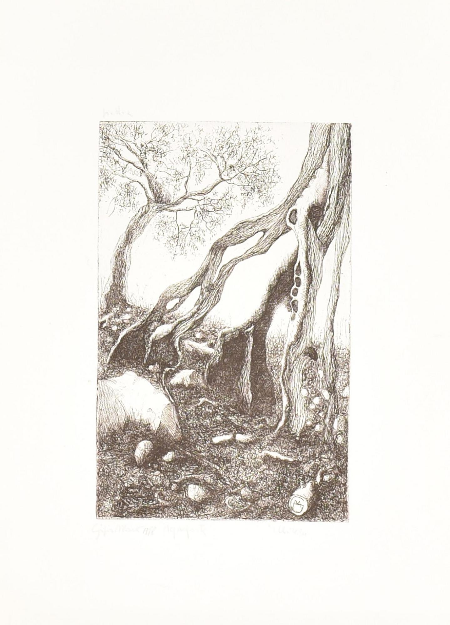 Mone Gigia ULIVO acquaforte su carta Fabriano, battuta cm 25x15,5, su foglio...