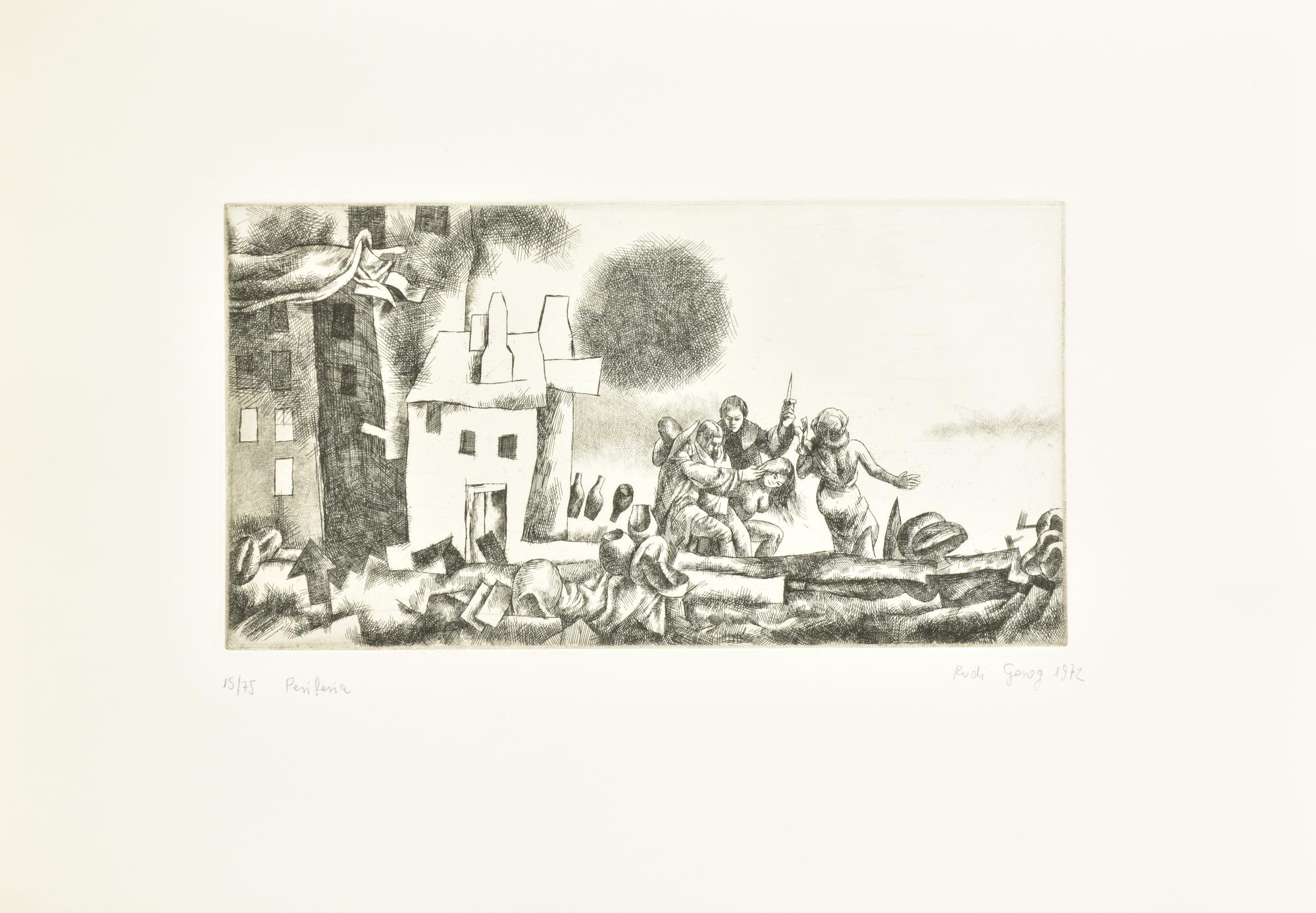 Rudi Gorog PERIFERIA incisione su carta Fabriano, battuta cm 16x30, su foglio...