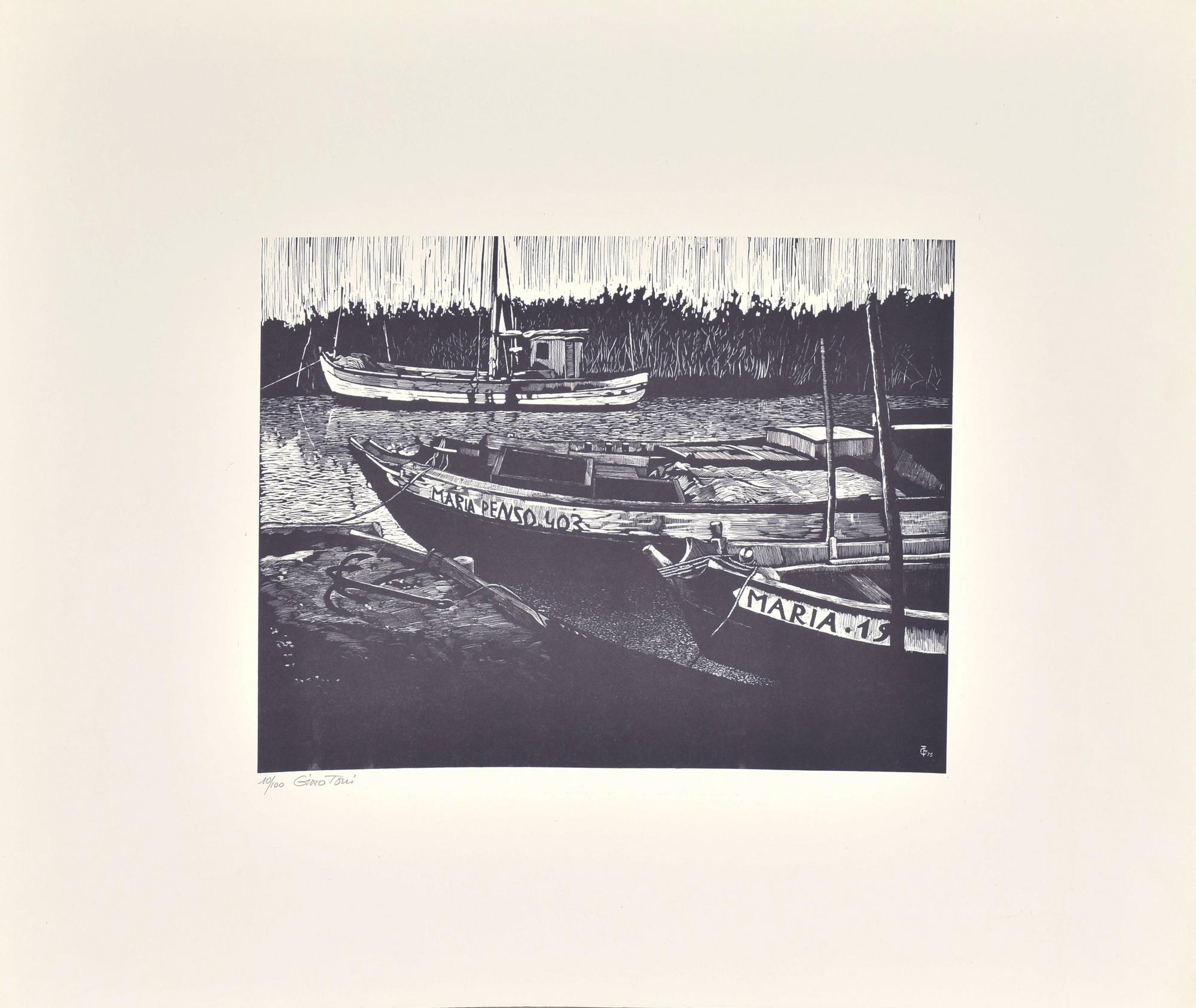 Gino Toni BARCHE litografia su carta, cm 50x58,5; es. 10/100 firma eseguita...