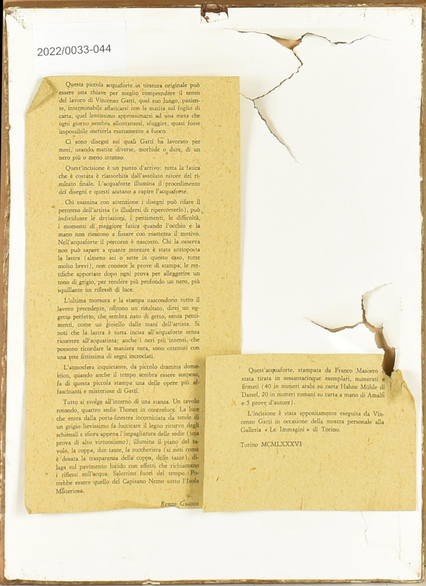 Lotto 84 | Vincenzo Gatti INTERNO acquaforte su carta, battuta cm 13x7,5, su foglio...