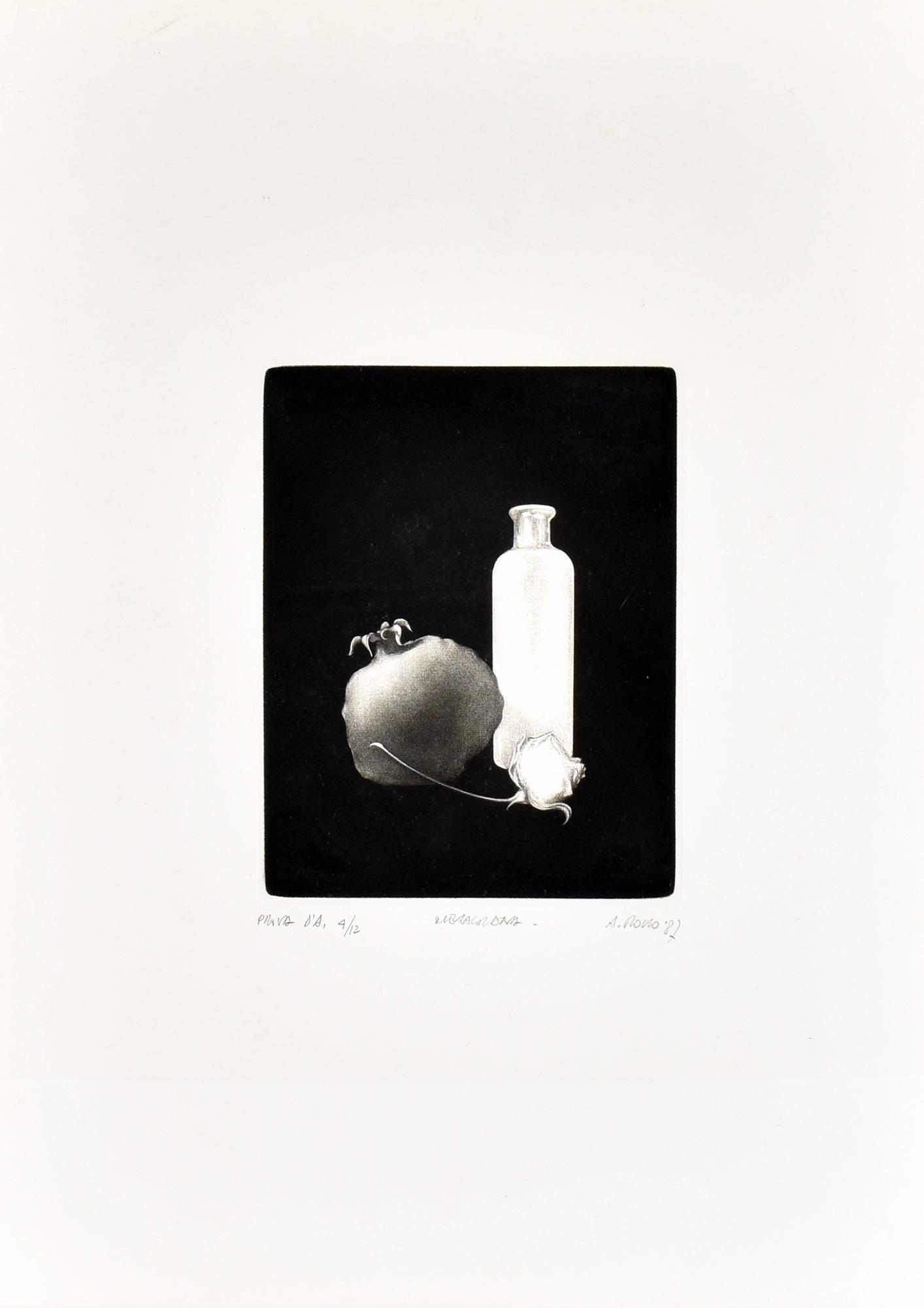 Alberto Rocco MELAGRANA maniera nera su carta, battuta cm 21x6, su foglio...