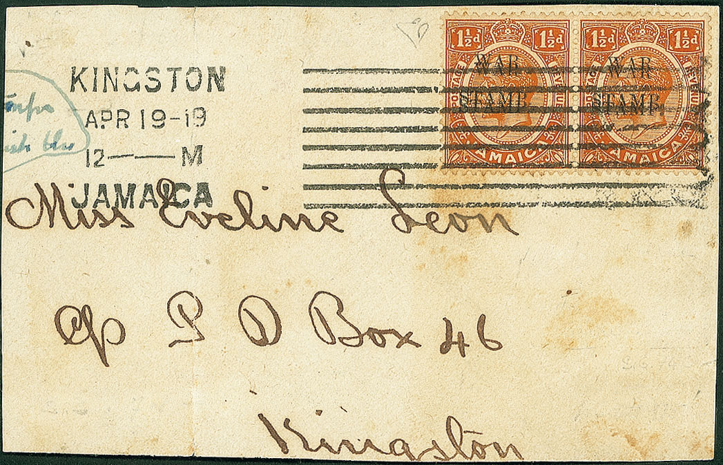 OLTREMARE - Giamaica - 1919 - un 1/2 pence War Stamp - coppia con doppie...