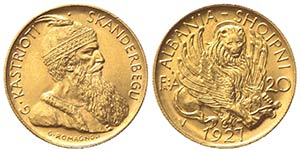 ALBANIA. Repubblica. 20 Franga Ari 1927 V. Au (21mm, 6.48g). KM 12; Fr. 6. qSPL