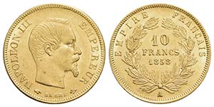 FRANCIA - Napoleone III (1852-1870) - 10 Franchi - 1858 A - Testa nuda - (AU g. 3,21) Kr. 784.3 Fondi lucenti - FDC