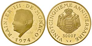Lotto 94 | MONACO. Ranieri III (1949-2005). 3000 Franchi 1974. Proof Au (32mm, 29.00g). KM X M6. SPL
